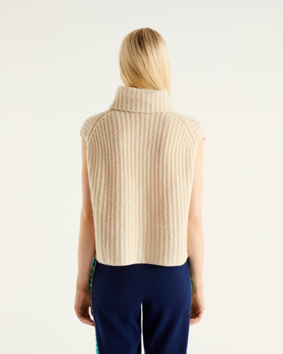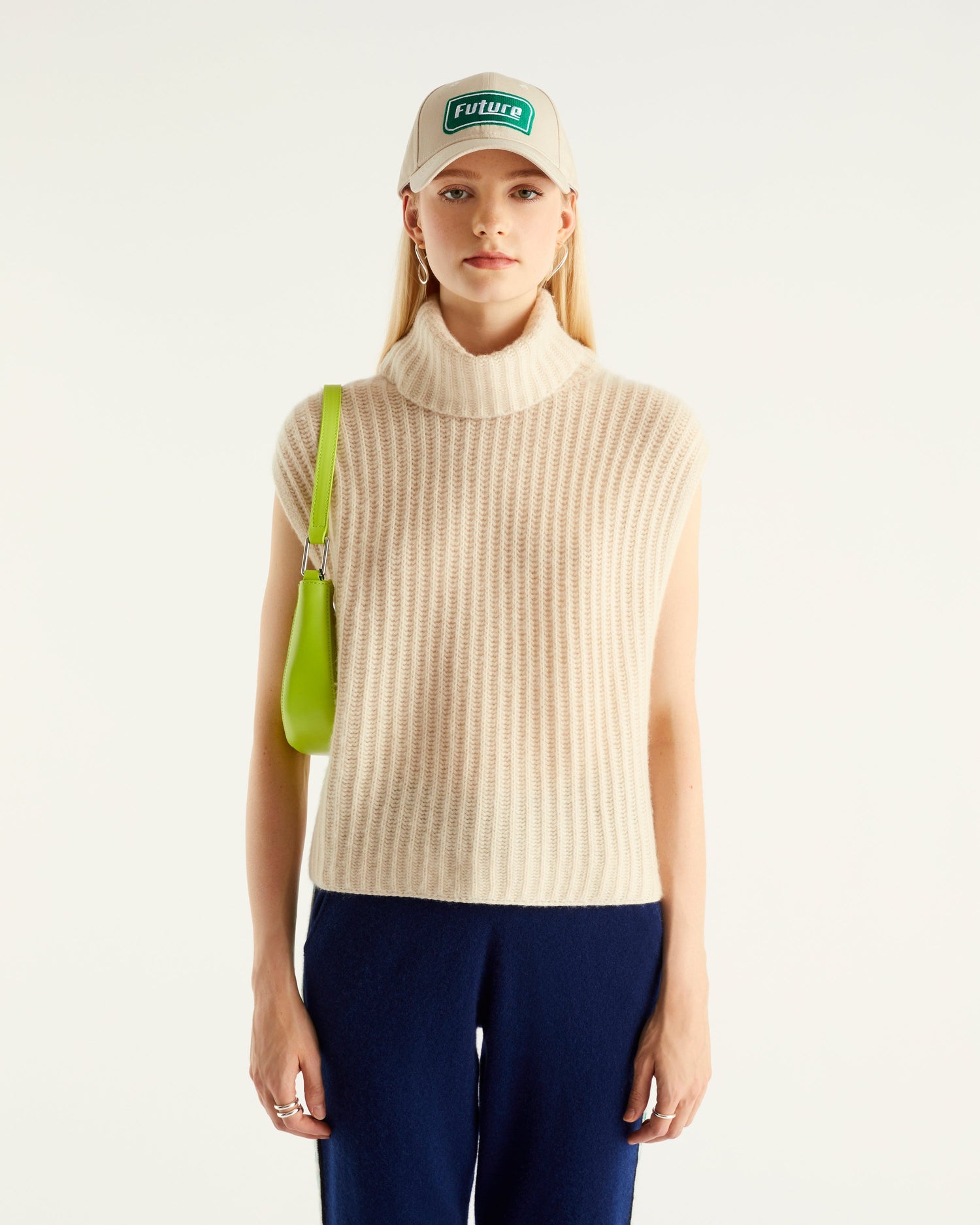 Short Turtleneck Mesh selezionato senza maniche 10 fili - 100% Cachemire - Sable