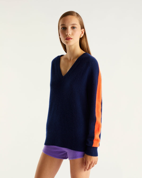Oversize V -Neck Handle 2 thread - 100% Cachemire - Encre