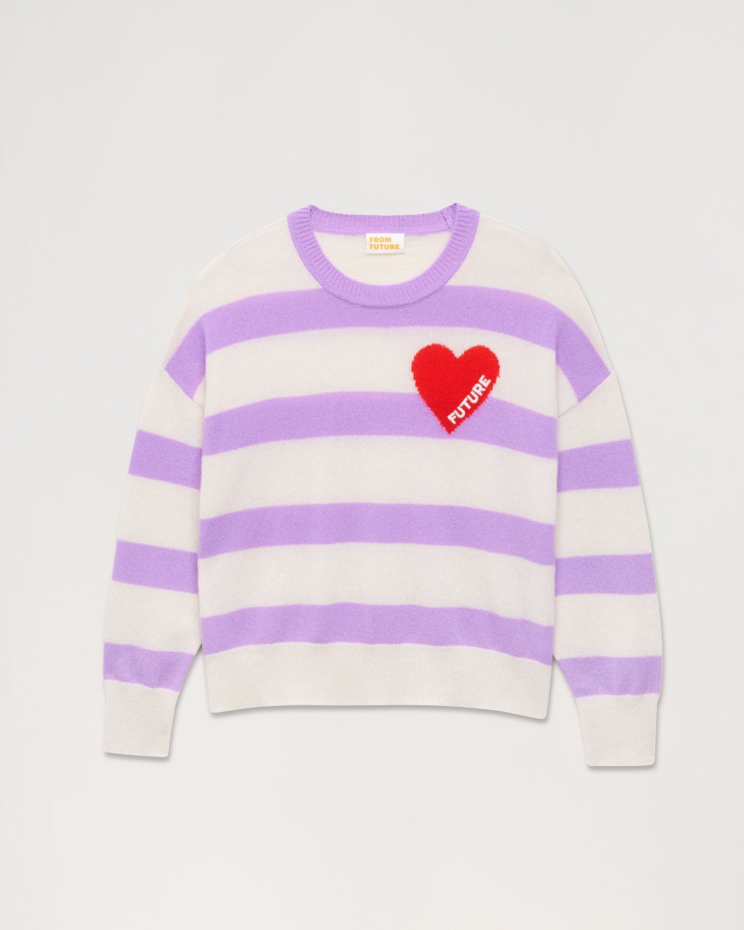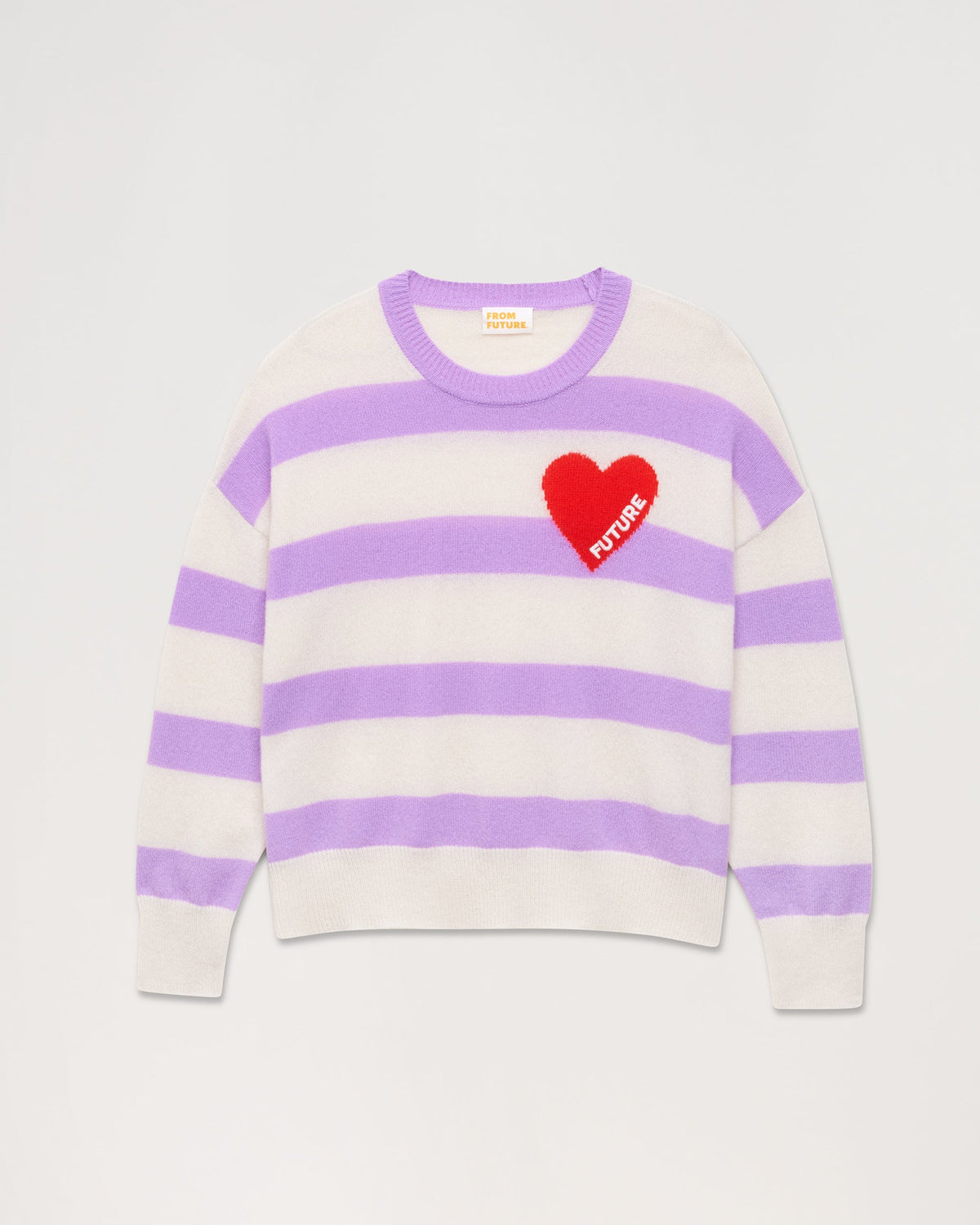 Sweater Pull Col Rond A Rayures Coeur From Future - Cachemire - Holiday lilac