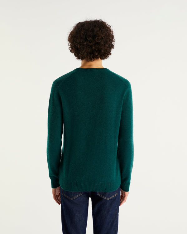Sweater Col circa 4 file - 100% Cachemire - Bottle green
