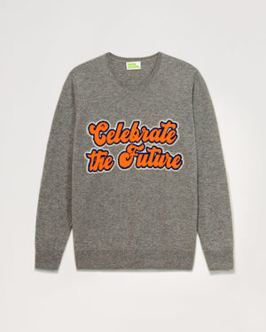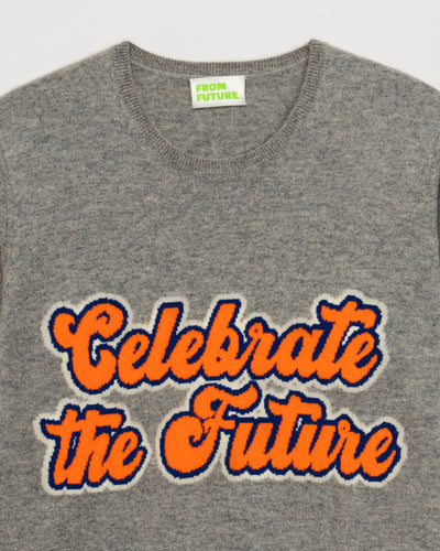 Sweater Col Rond Celebrate Your Future 2 Fils - 100% Cachemire - Gris chine fonc