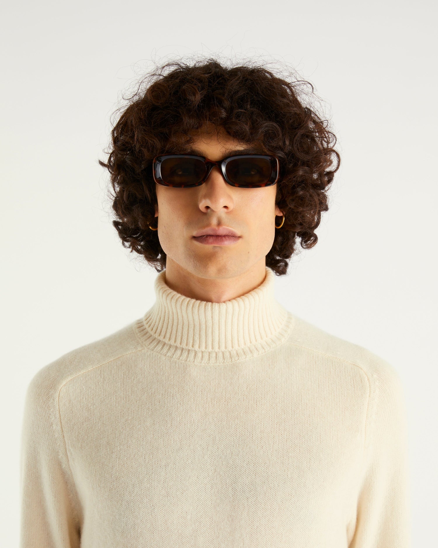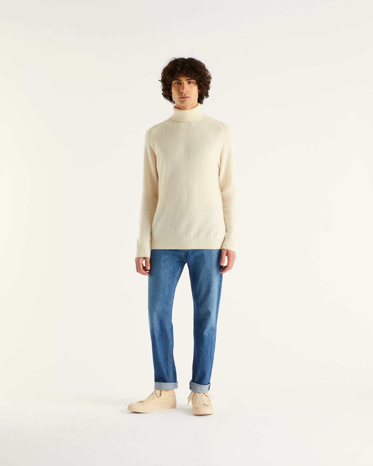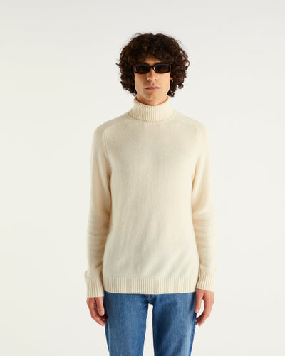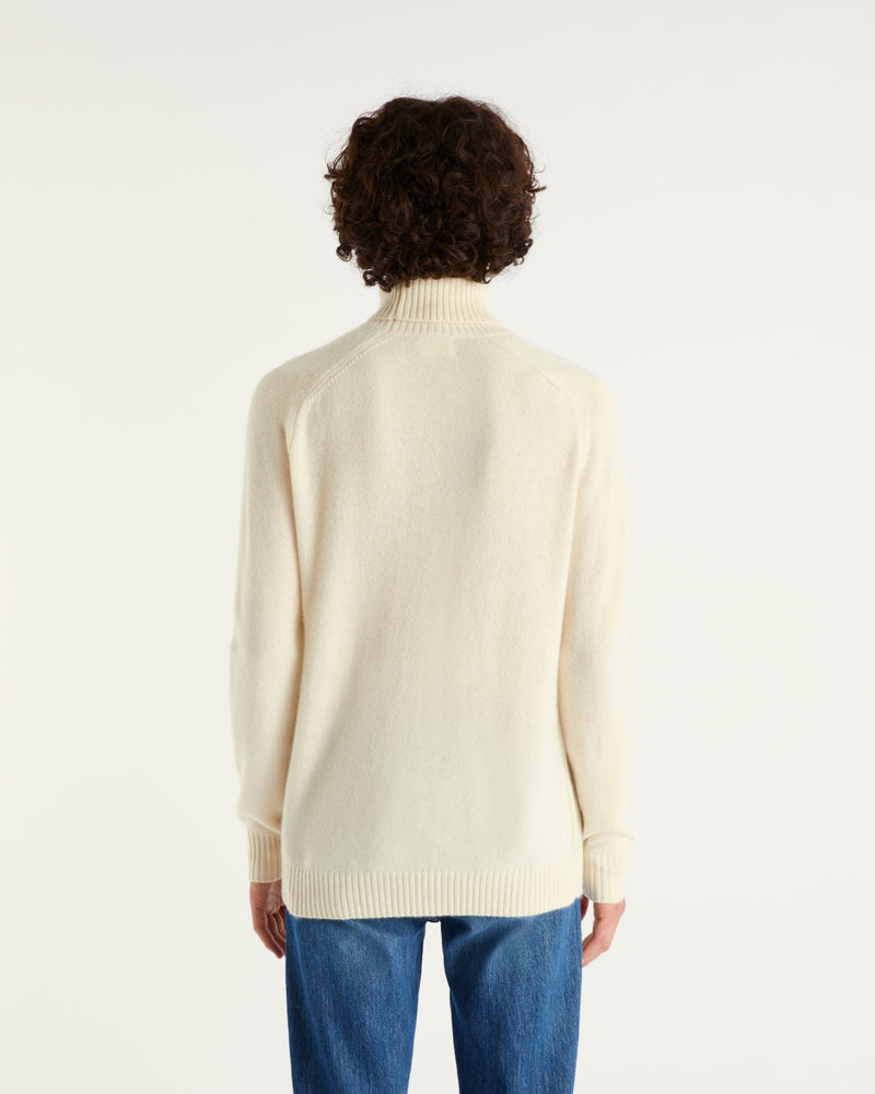Sweater Col Roulé Manche Marteau 4 Fils - 100% Cachemire - Ecru