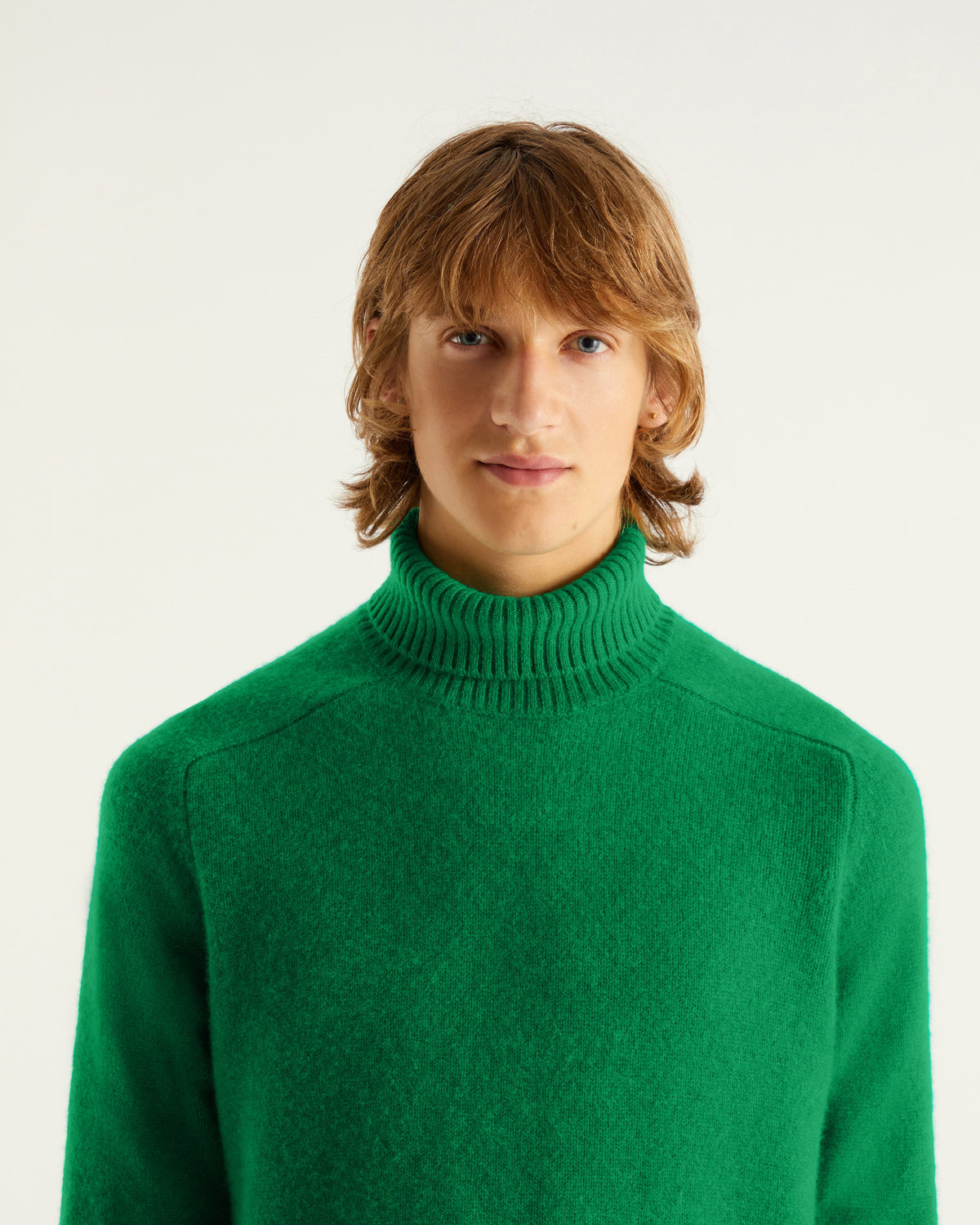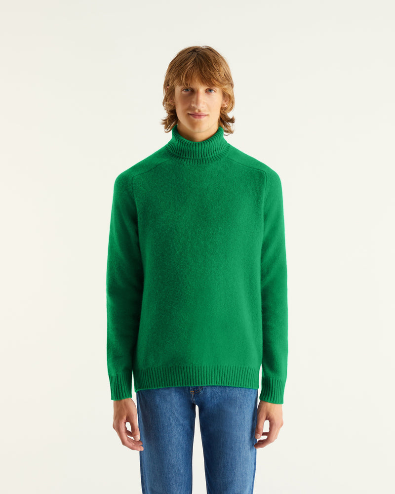 Sweater Col Roulé Manche Marteau 4 Fils - 100% Cachemire - Party green