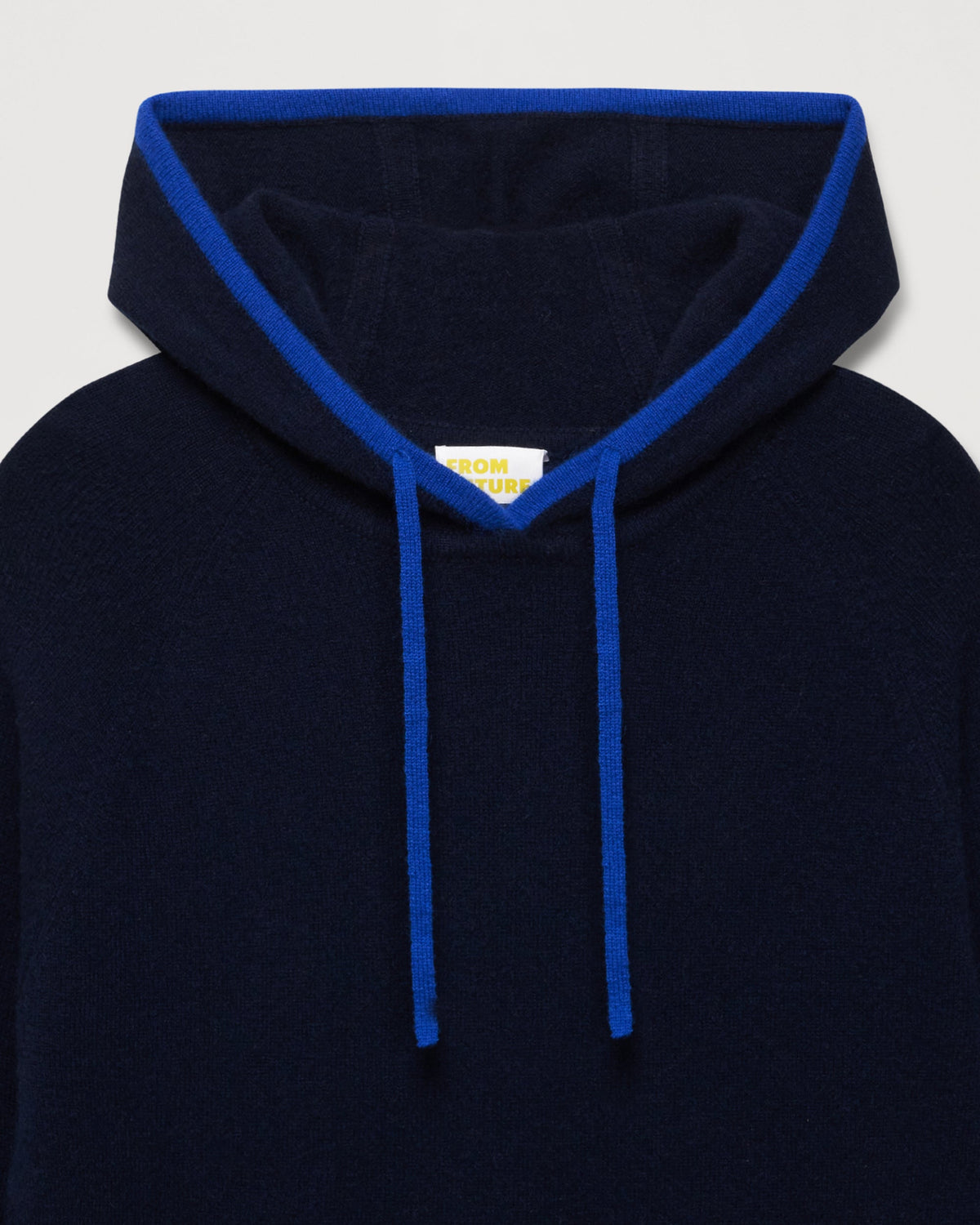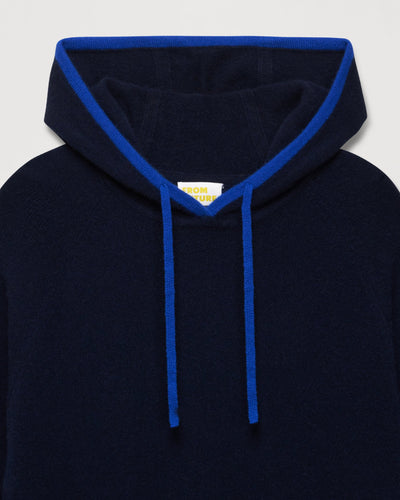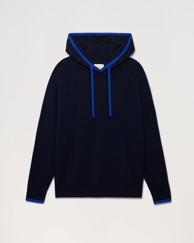 Pull Hoodie A Poche Et Liserets Contrastes - Cachemire - Navy