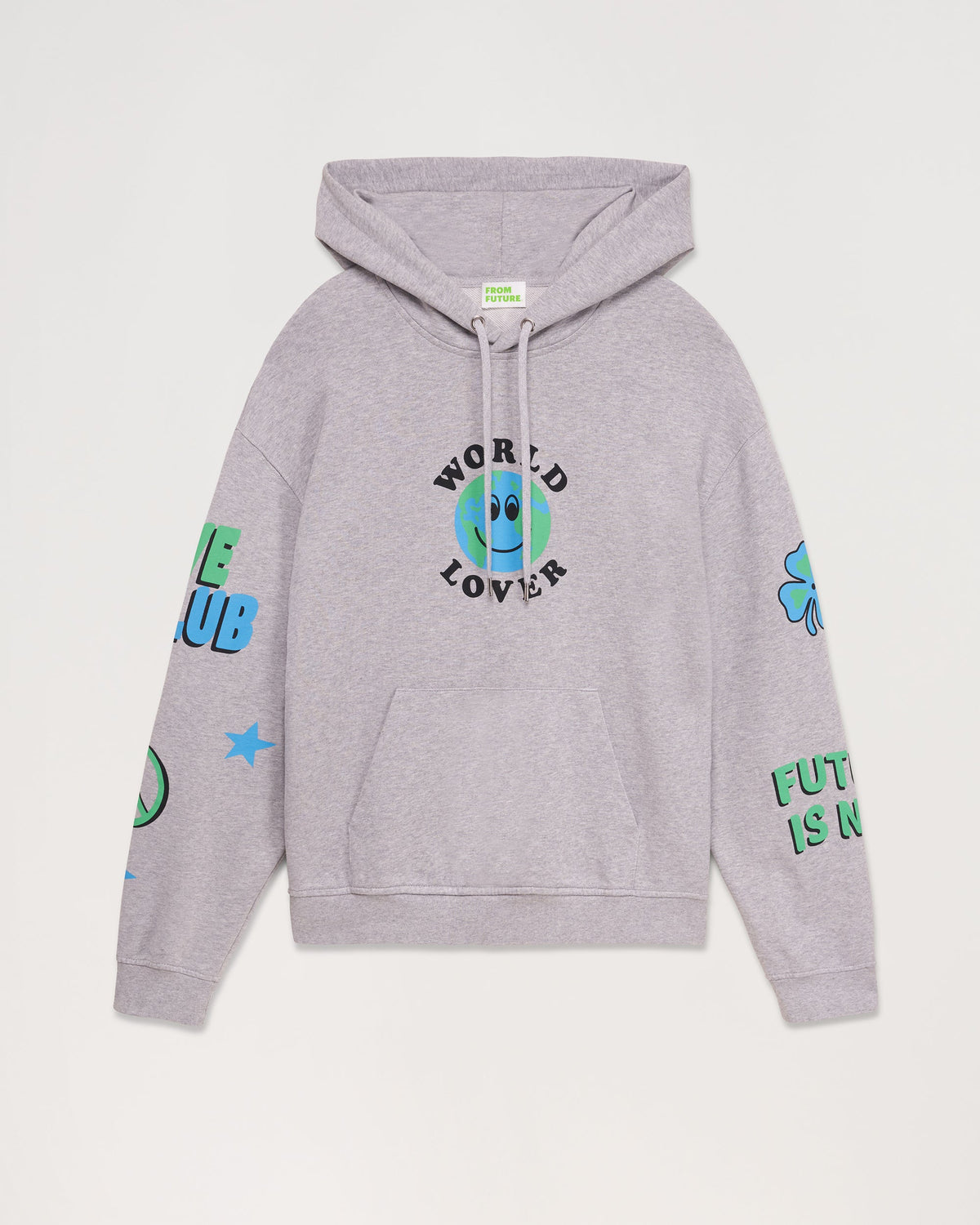 Sweatshirt Hoodie World Lover - Coton Organique - Gris chine clai