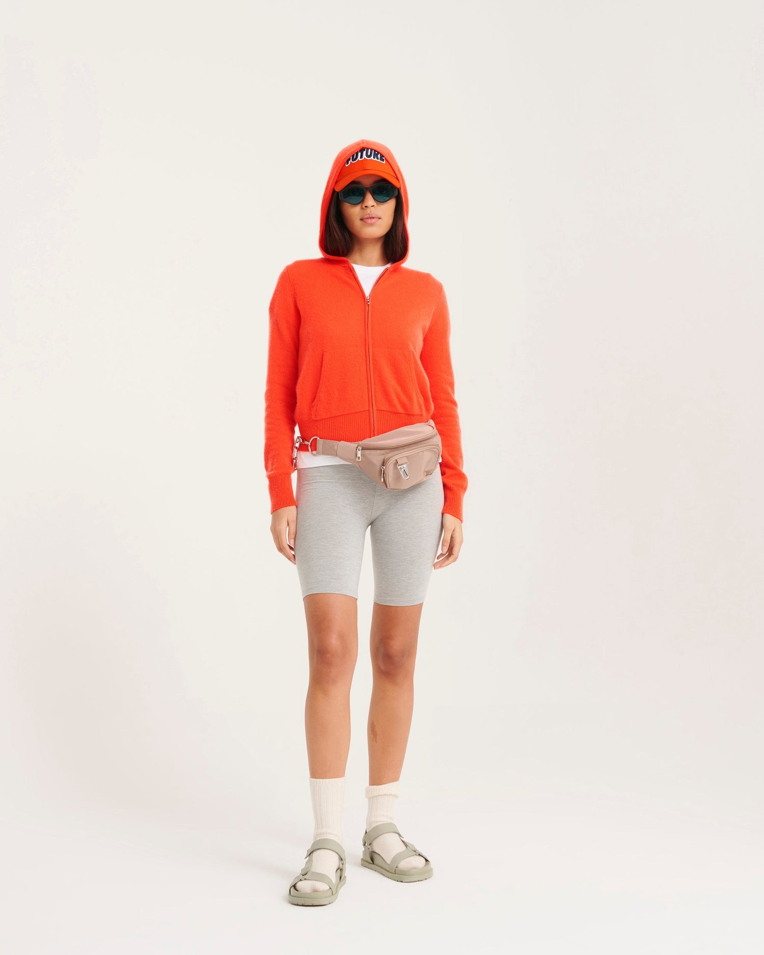 Felpa con cappuccio corto zippato