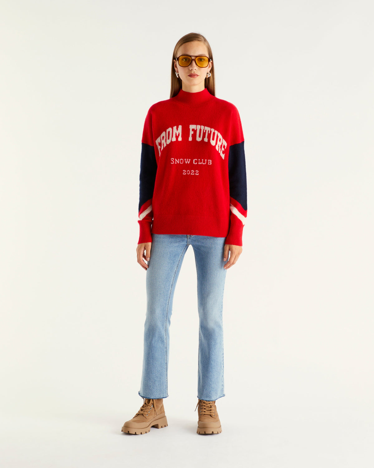 Sweater Col Montant From Future Snow Club 2 Fils - 100% Cachemire - Red