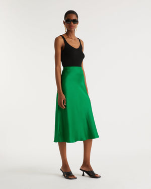 Jupe Mi Longue Carmen - Soie - Vert