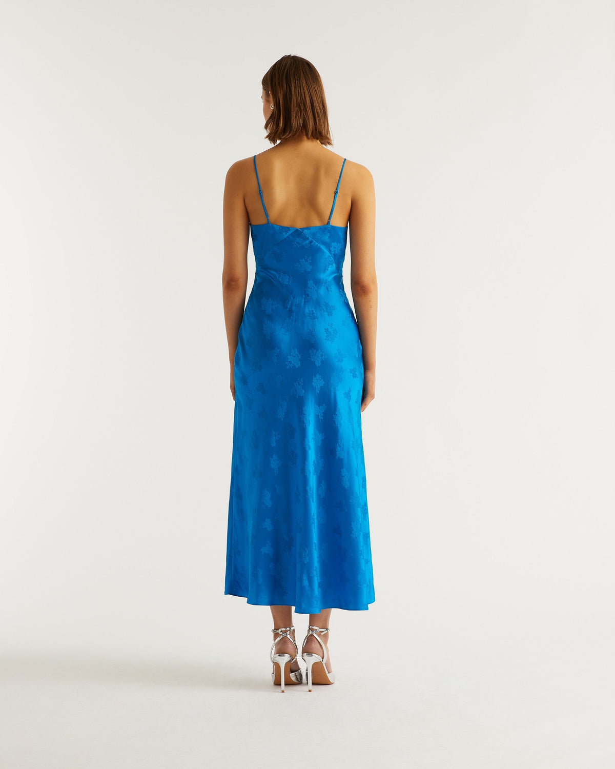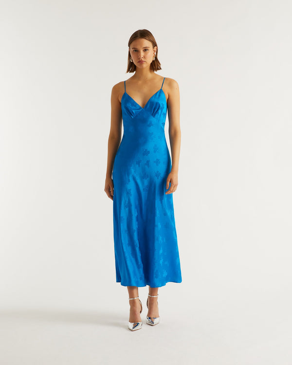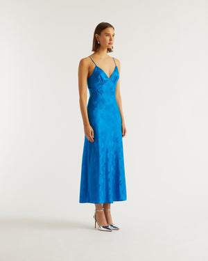 Robe Longue Bretelle Gigi - Soie - Jacquard bleu