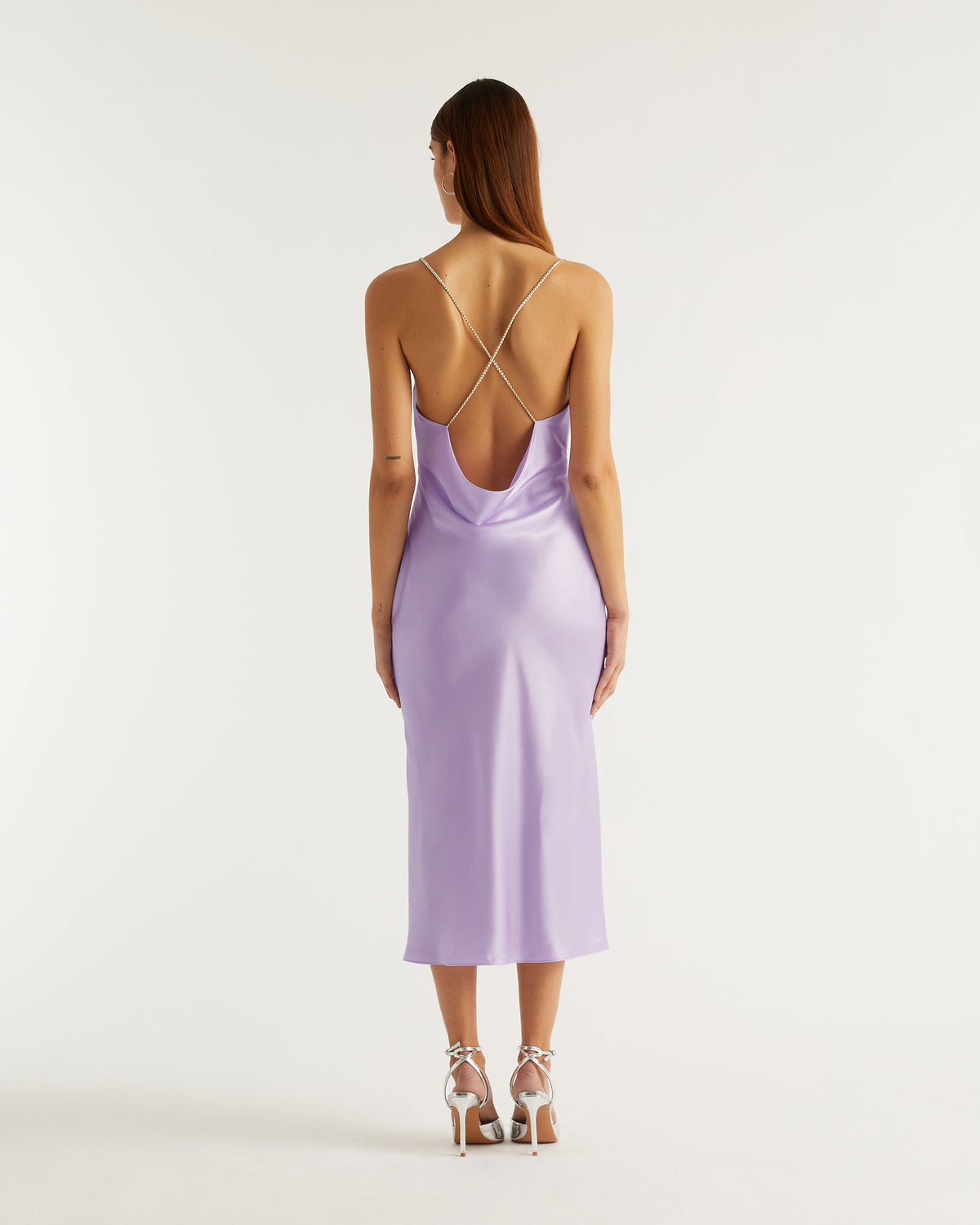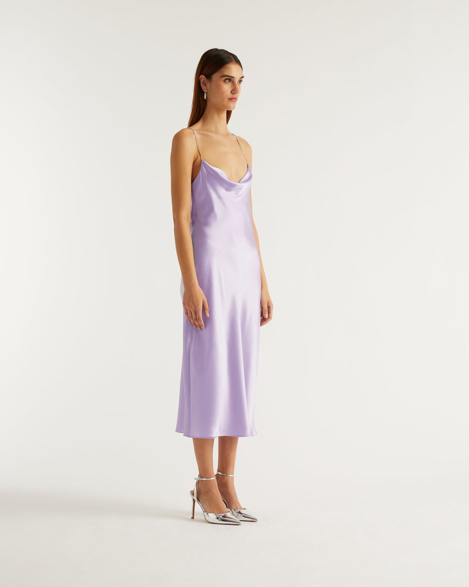 Robe Longue Bretelle Naomi - Soie - Lilas