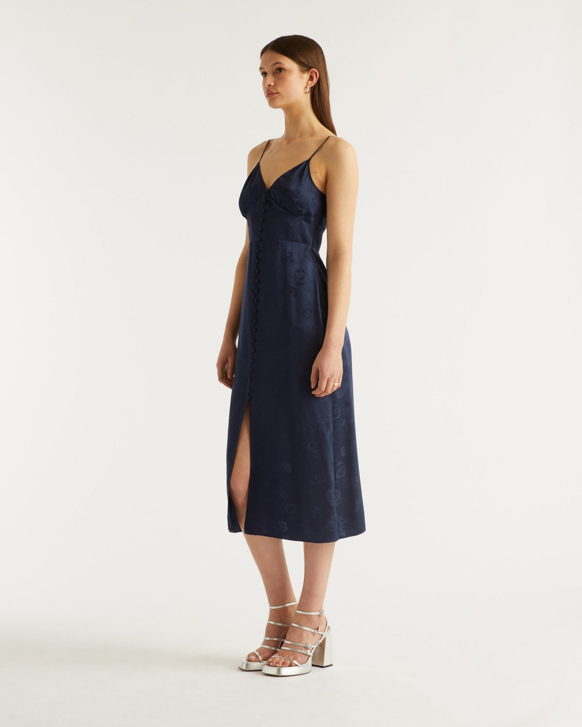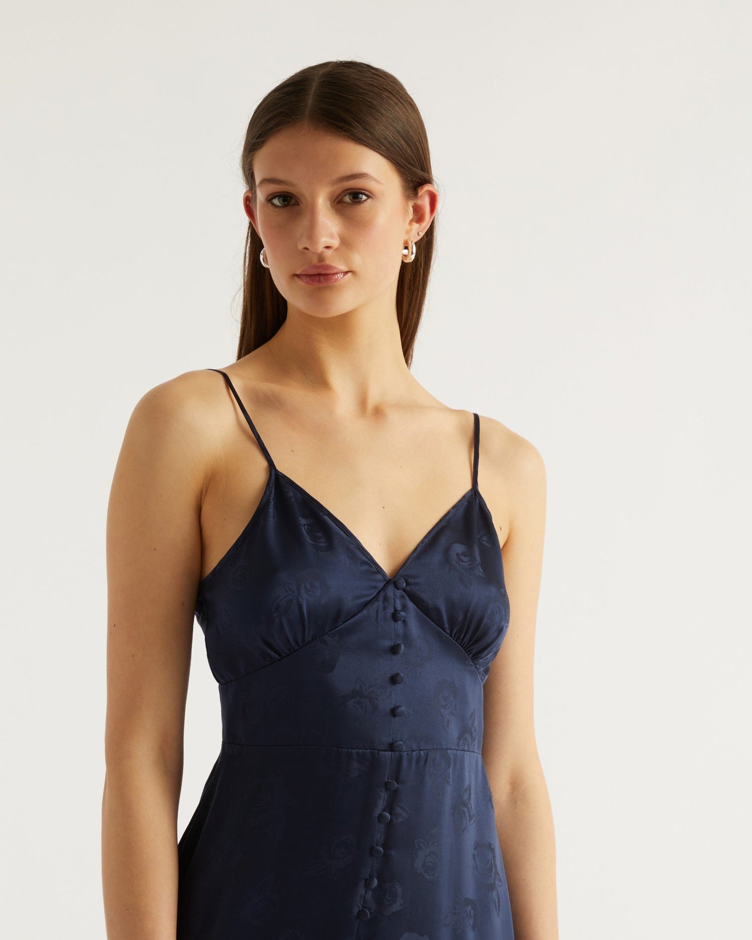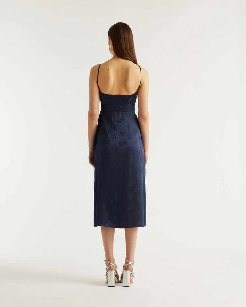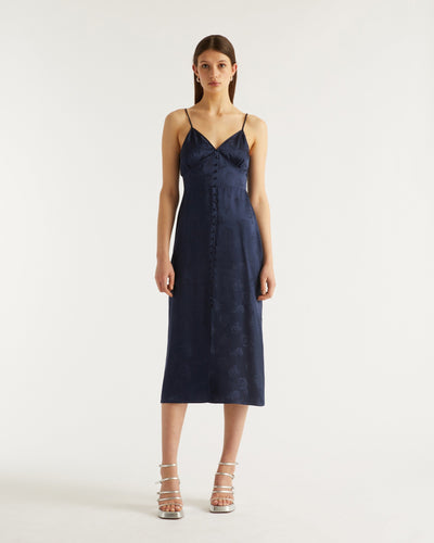 Robe Longue Manche Courte Martha - Soie - Jacquard navy