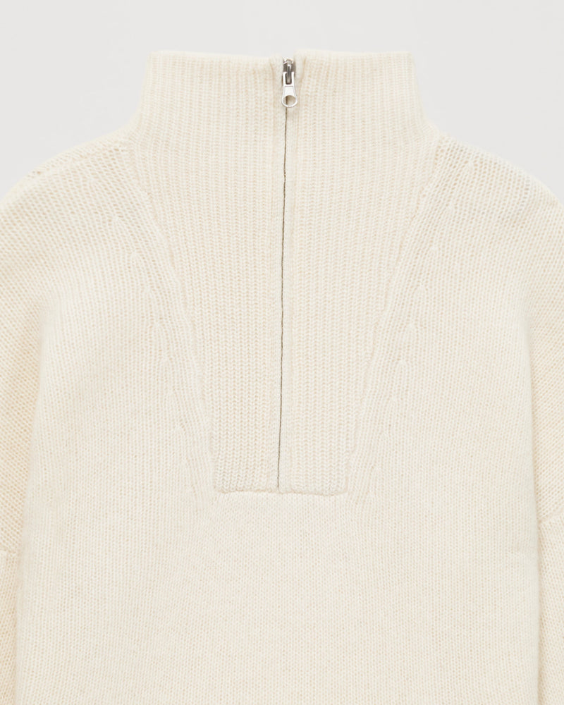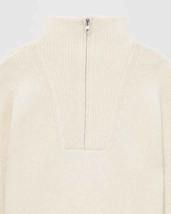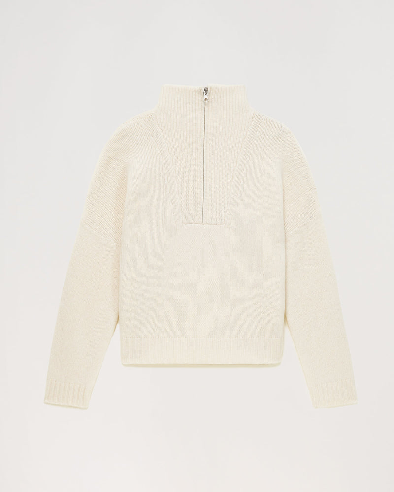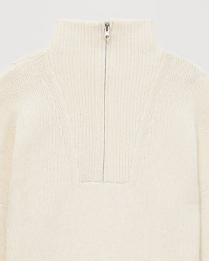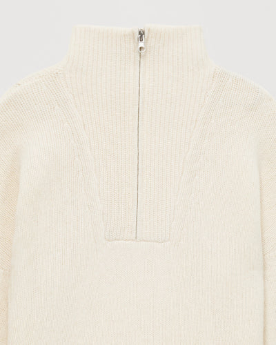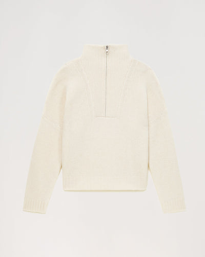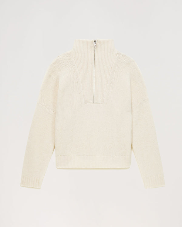 Sweater Col Montant Court Zippé 6 Fils - 100% Cachemire - Ecru