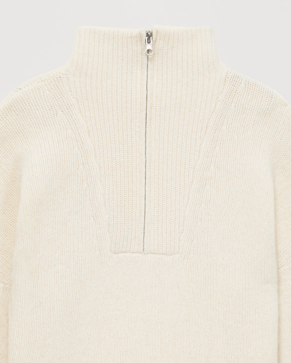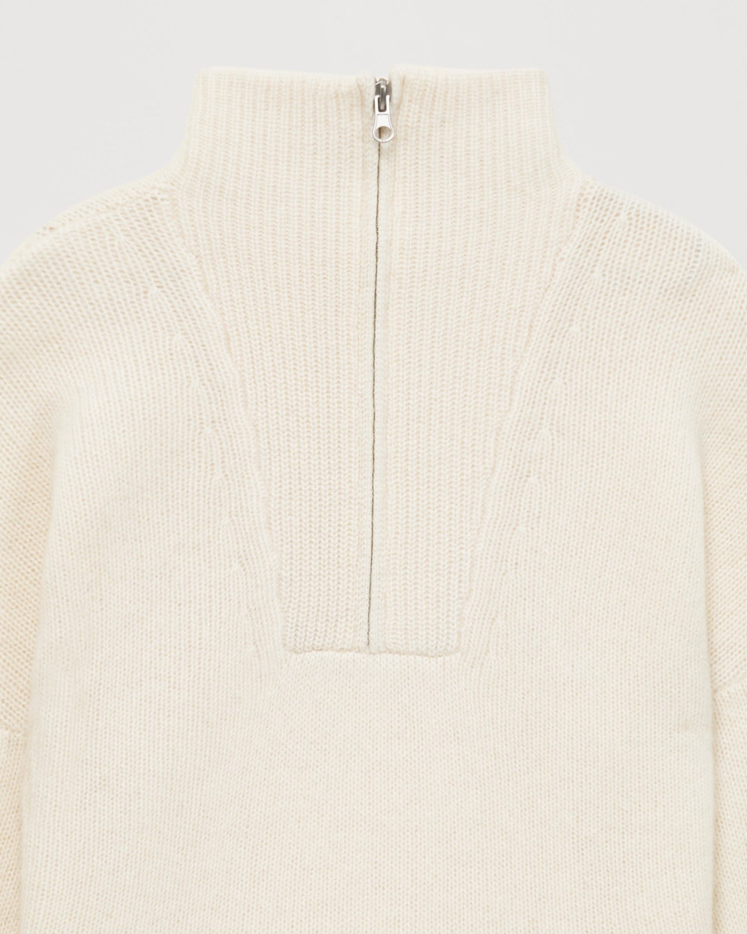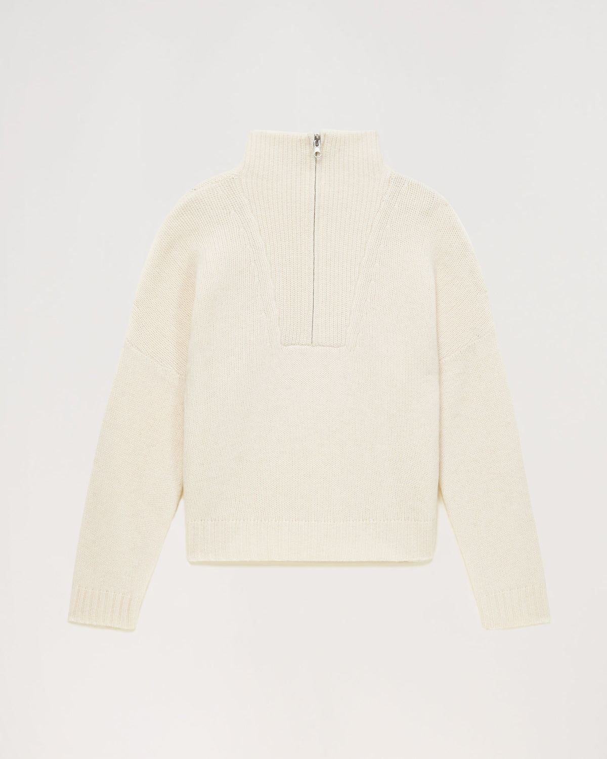 Sweater Col Montant Court Zippé 6 Fils - 100% Cachemire - Ecru