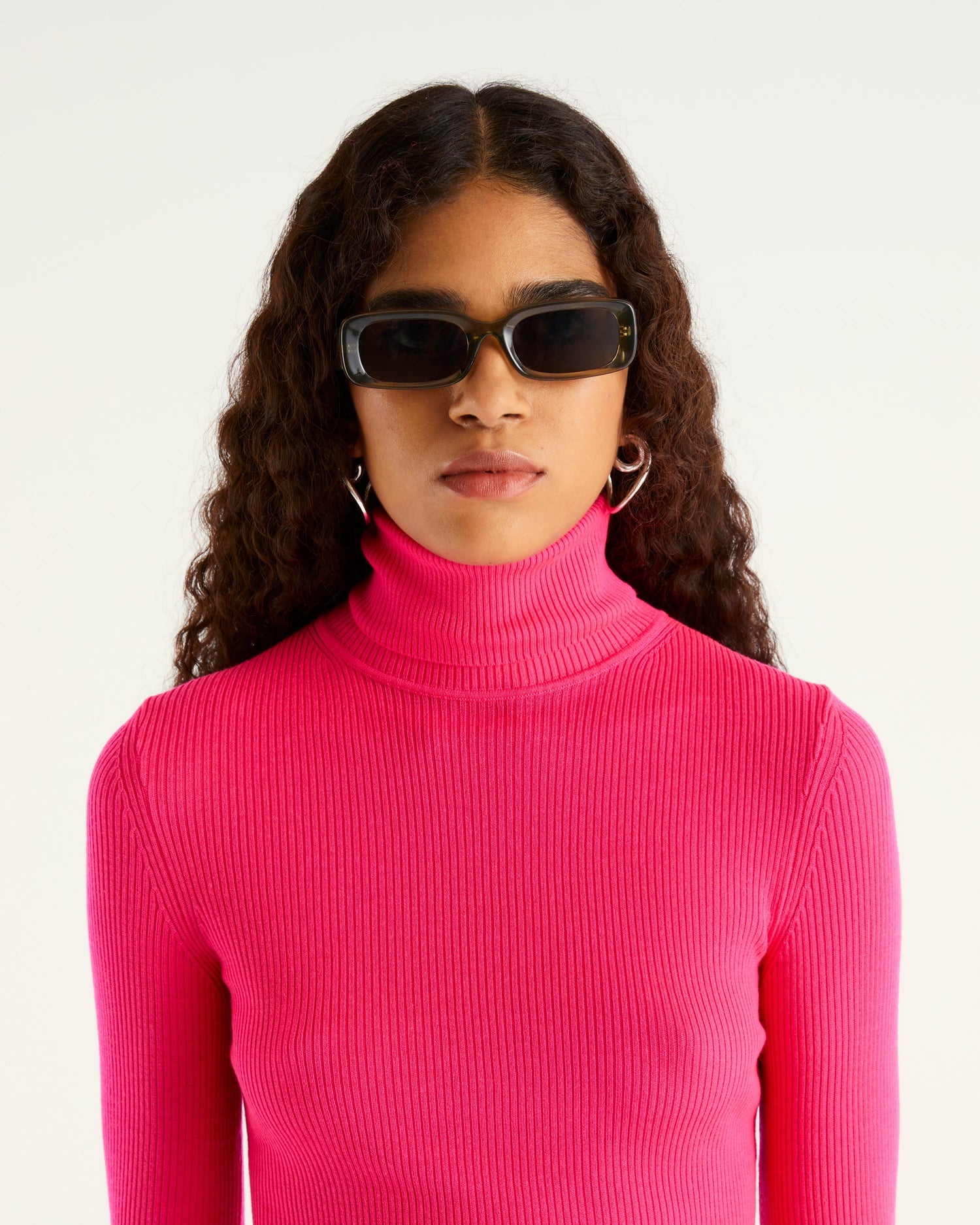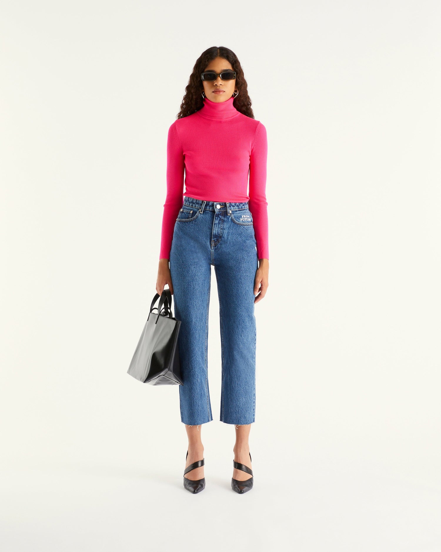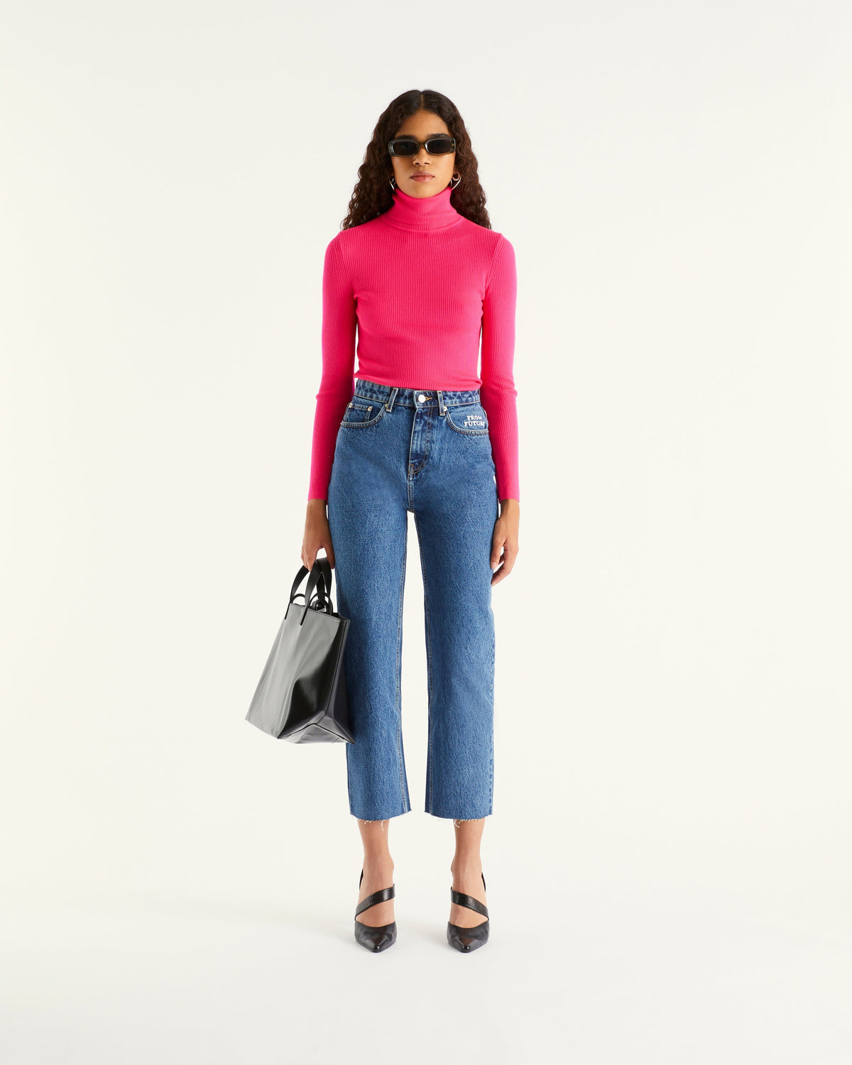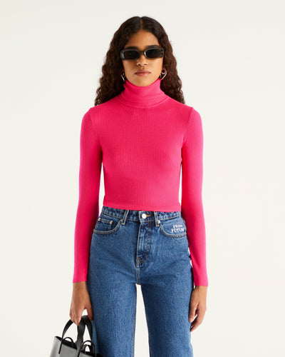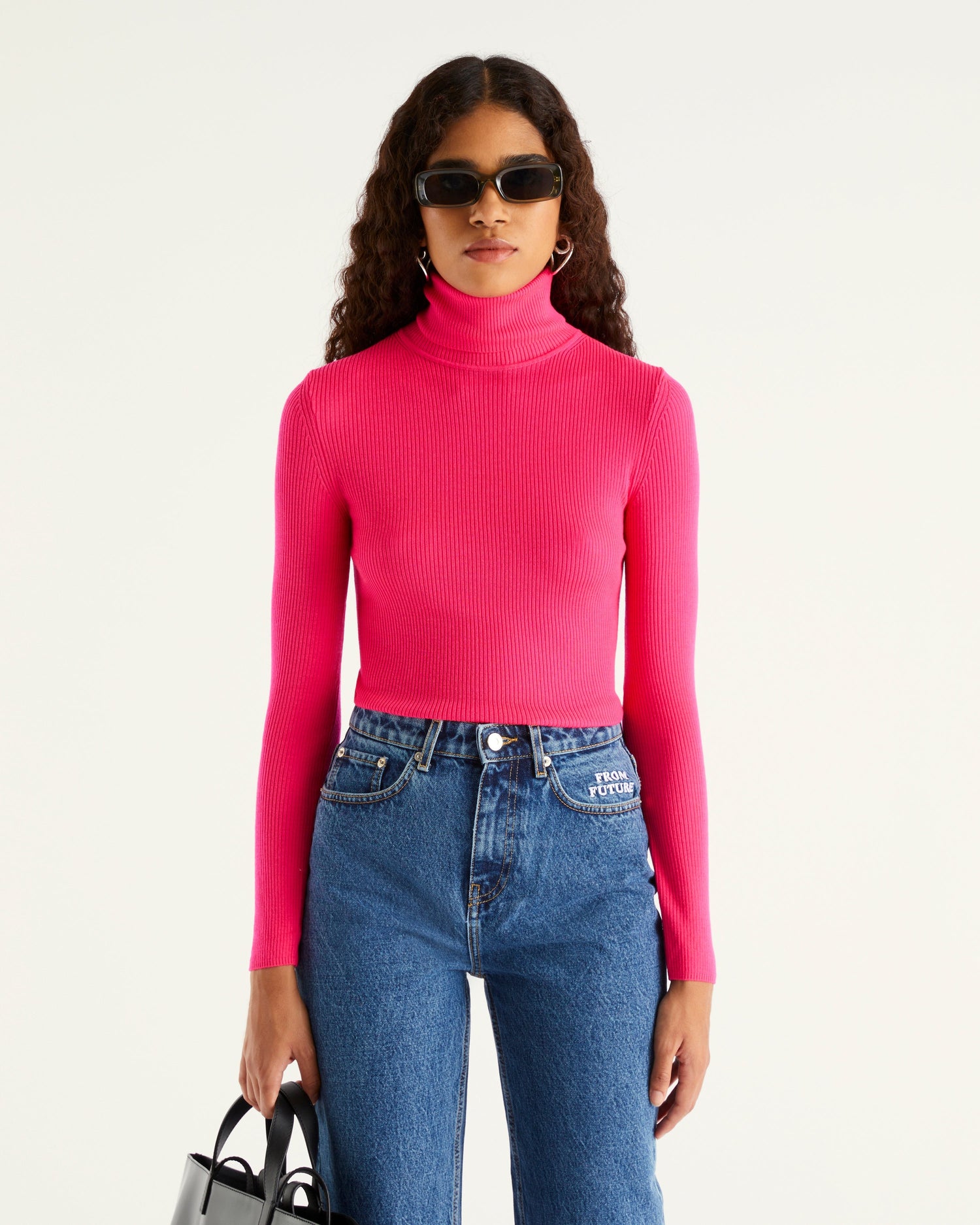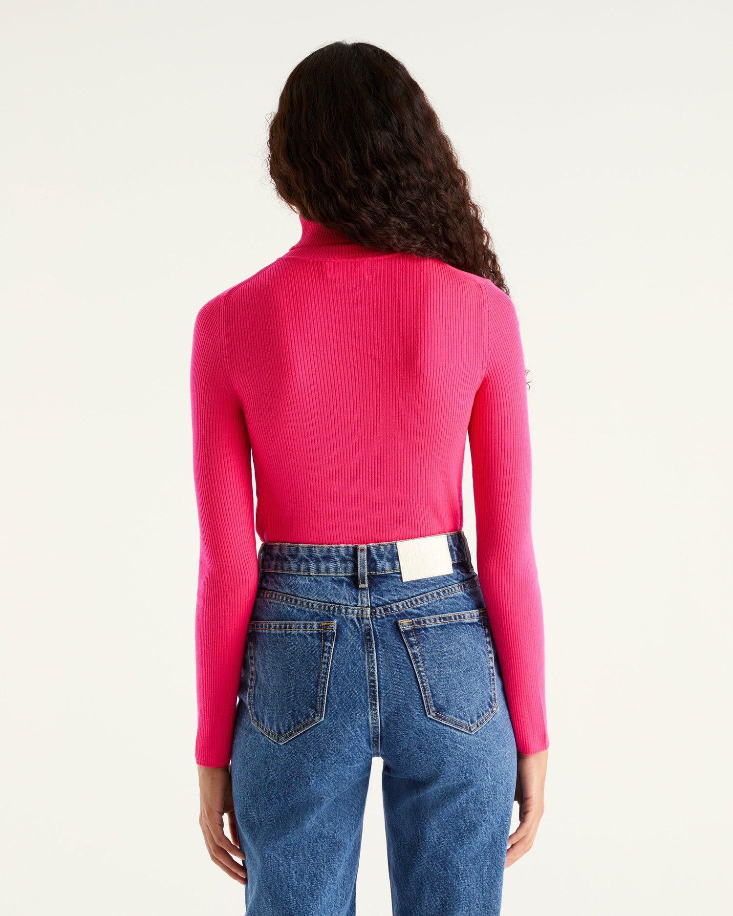 Sweater Col Roulé à Côtes Ice Wool - 100% Laine Mérinos - Winter fuschia