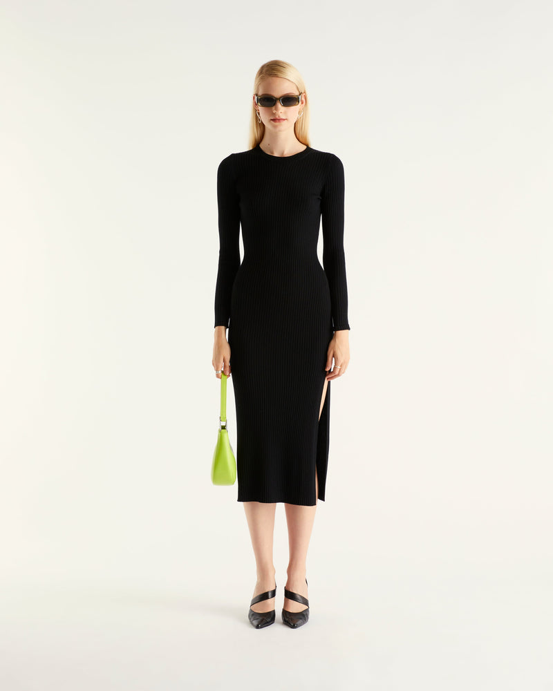 Robe à Côtes Ice Wool - 100% Laine Mérinos - Noir