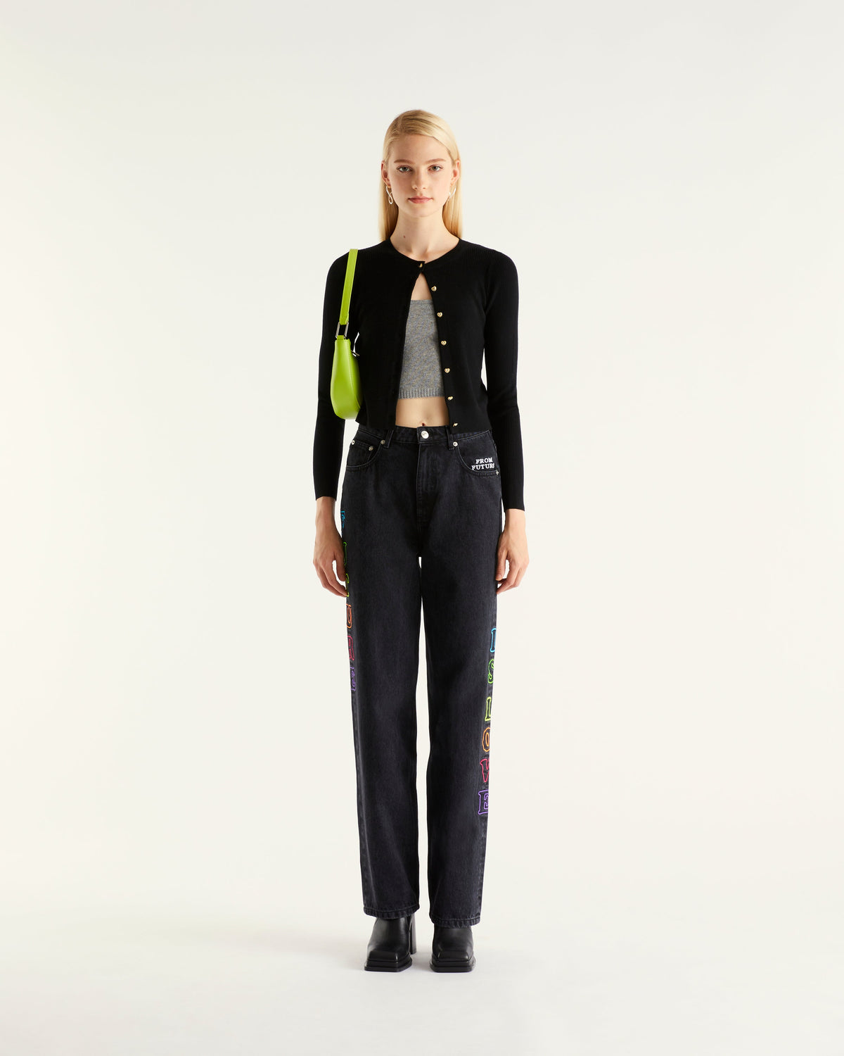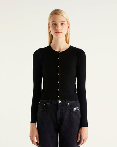 Cardigan à Côtes Bouton Fantaisie 2 Fils - 100% Laine Mérinos - Noir