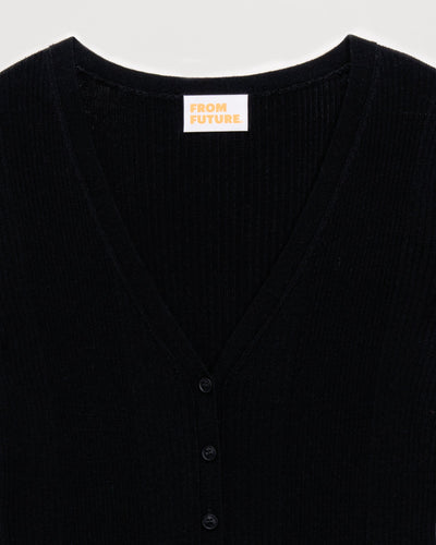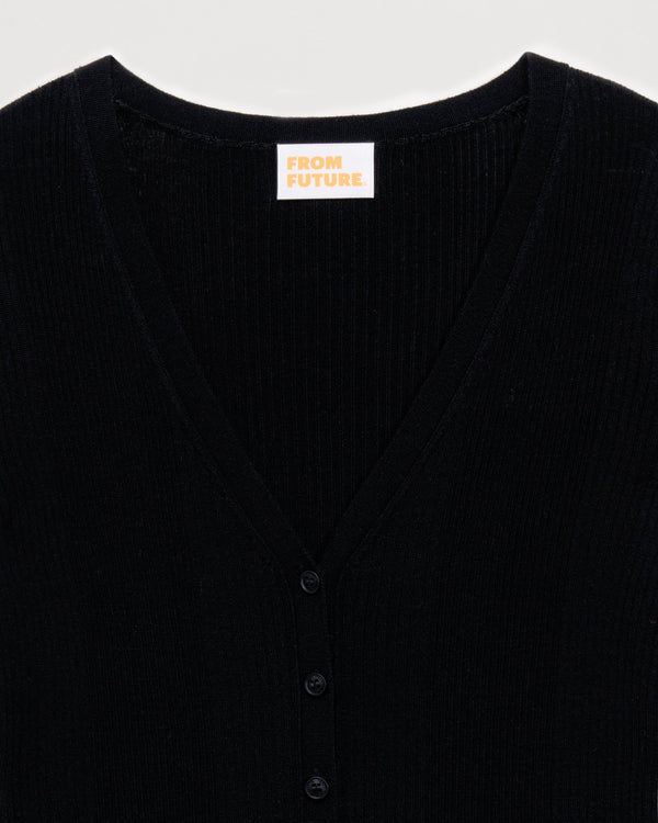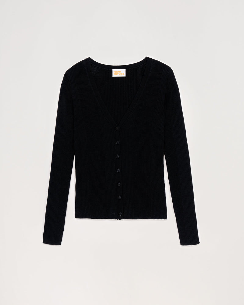 Cardigan à Côtes Ice Wool - Laine Mérinos - Noir