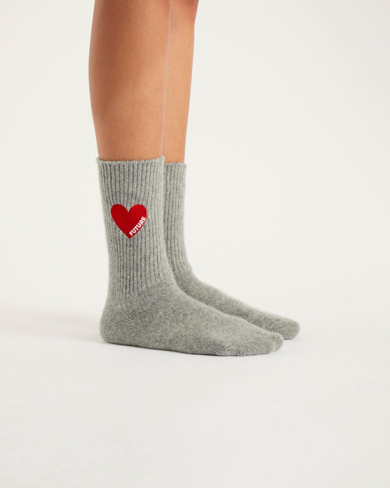 Future Heart Socks - 100% Cachemire - Gris chine fonc