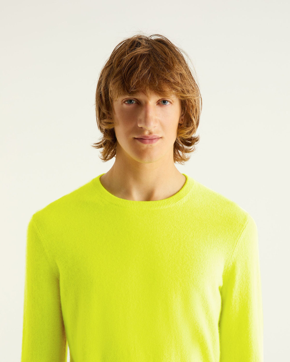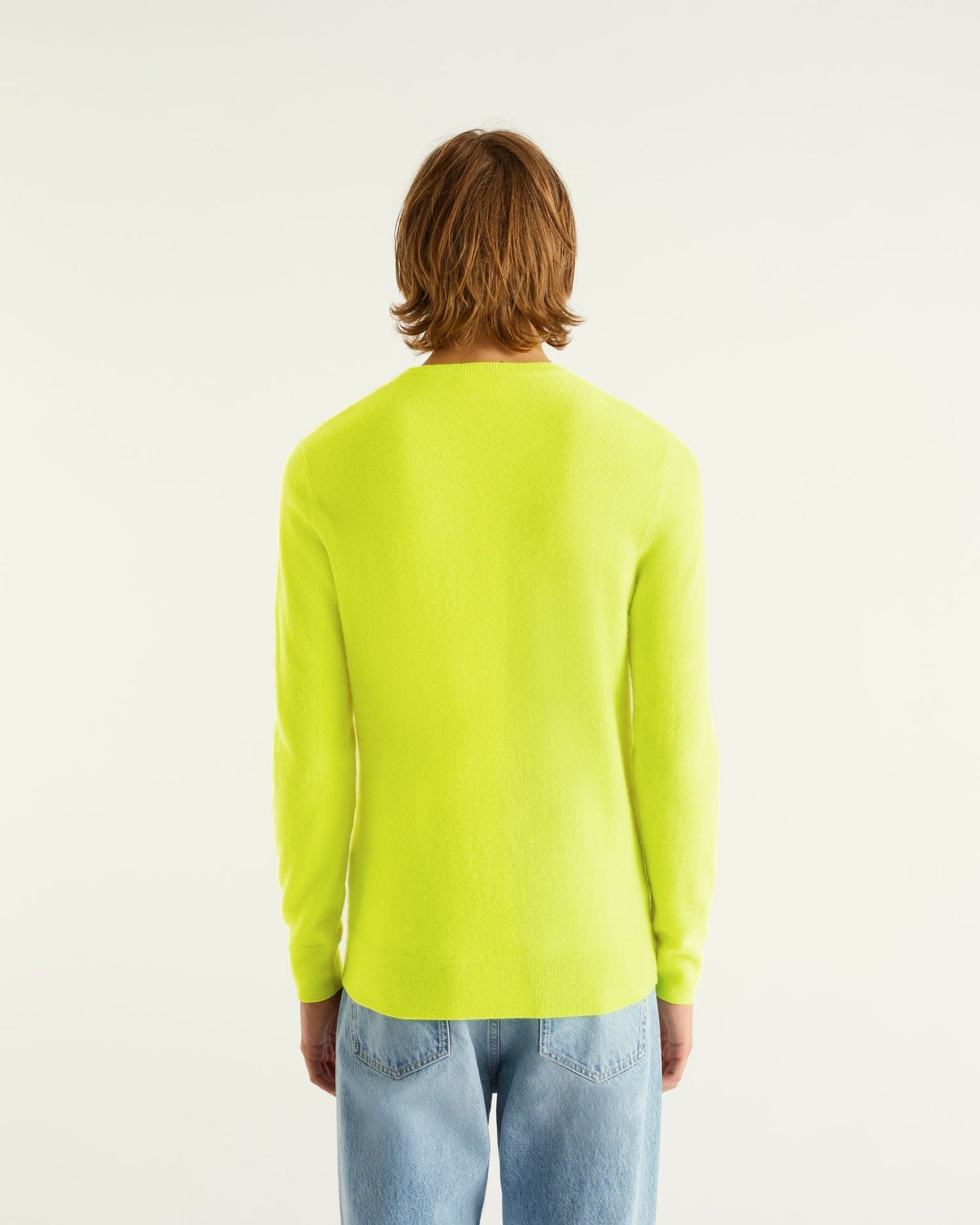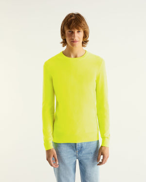 Sweater Col Rond 2 Fils - 100% Cachemire - Jaune fluo
