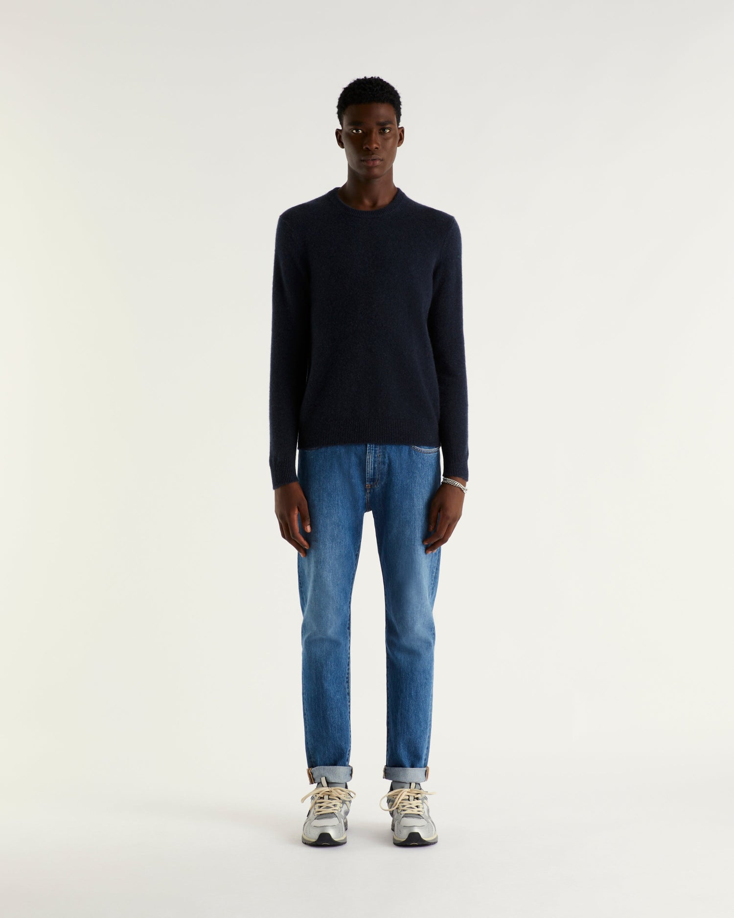 Neck rotondo a 4 thread - 100% Cachemire - Bleu chine