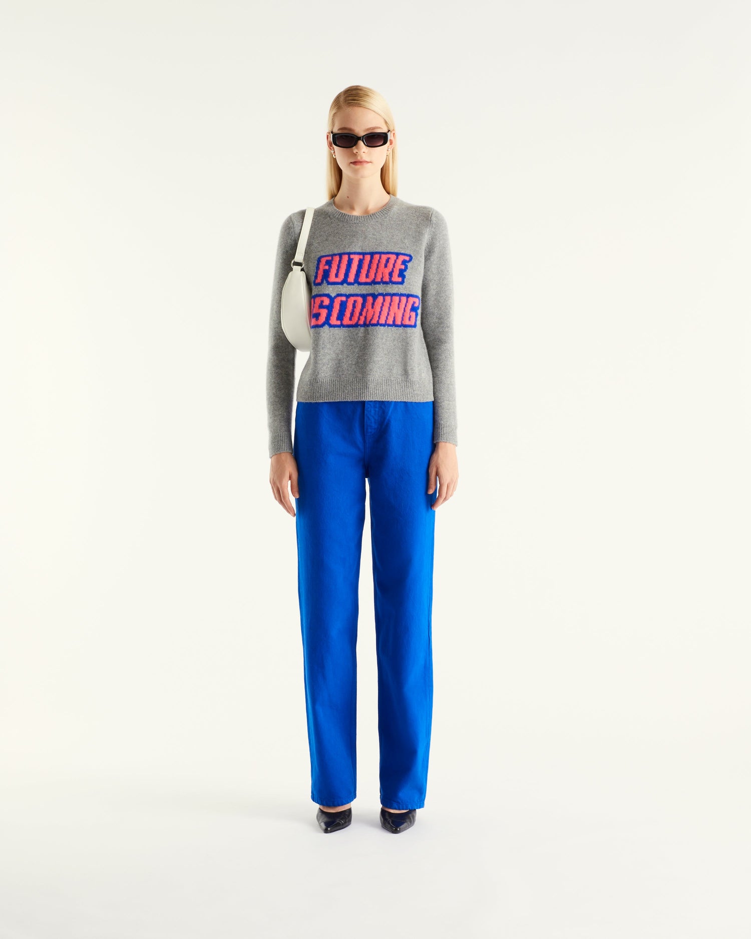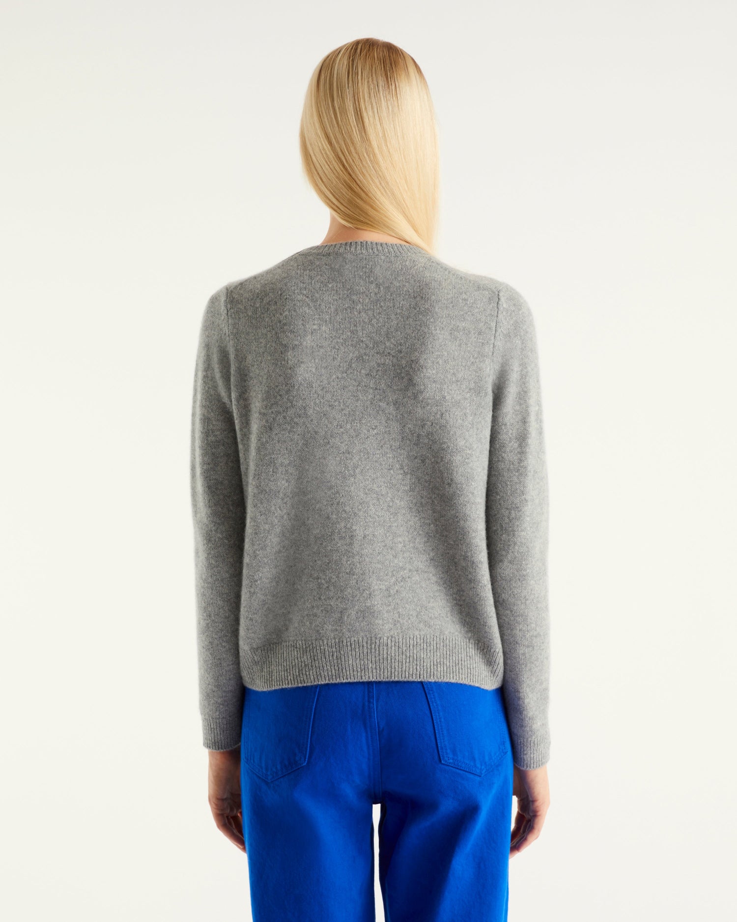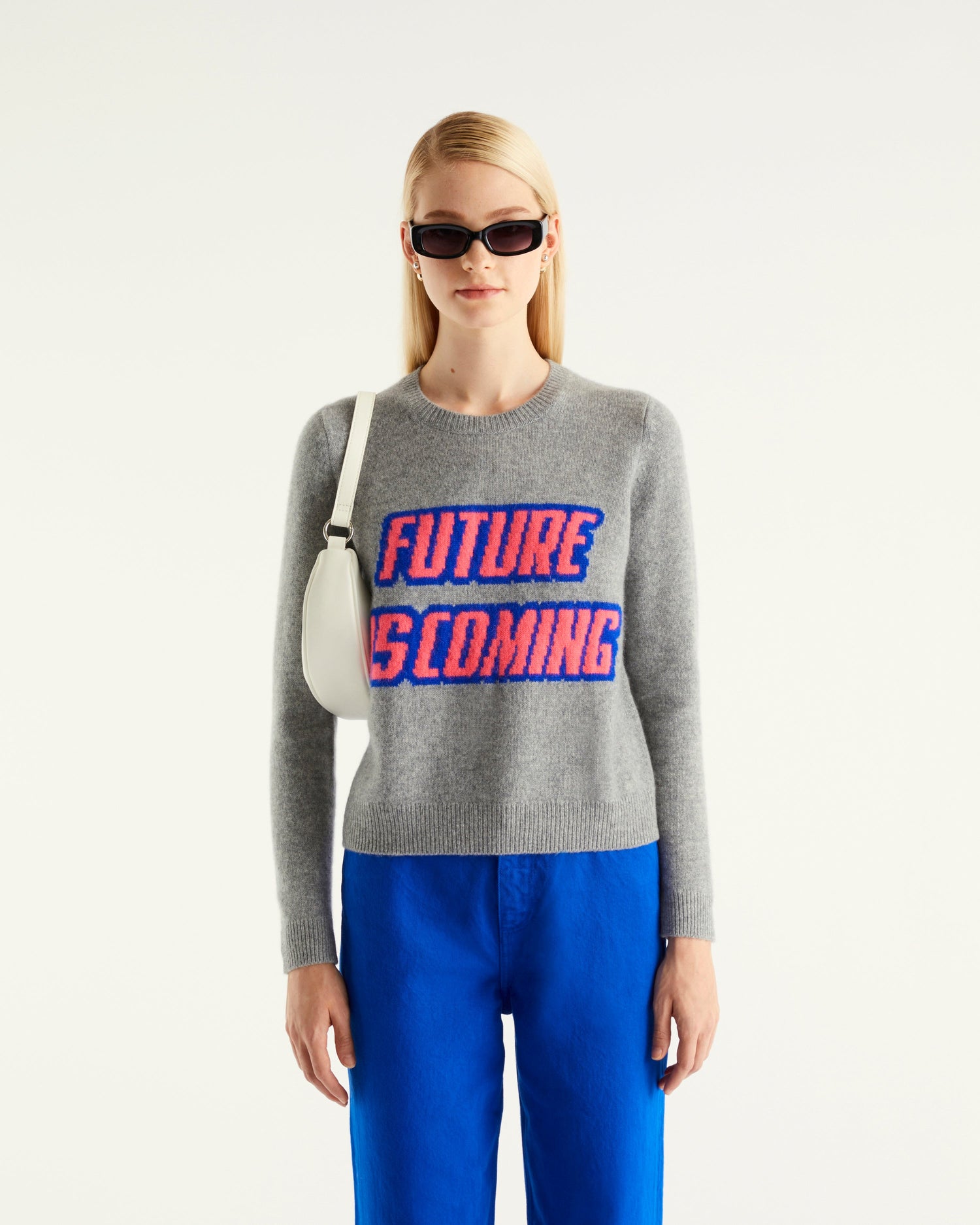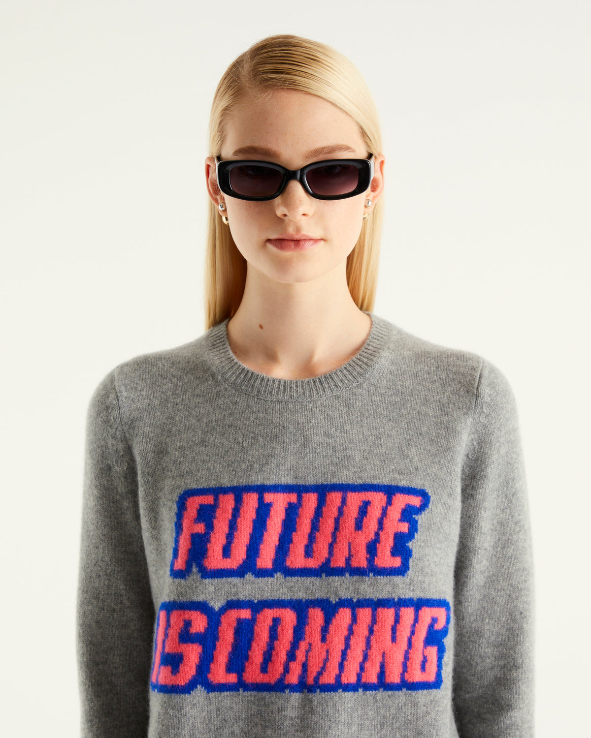 Sweater Col Rond Court Future Is Coming 4 Fils - 100% Cachemire - Gris chine fonc