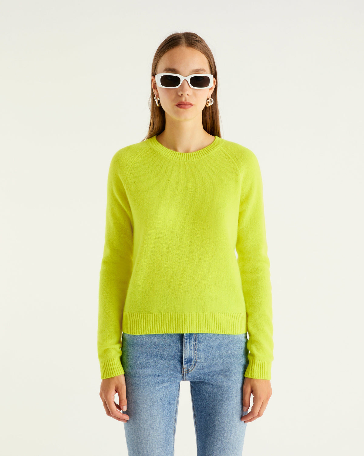 Sweater Collo rotondo corto leggero - 100% Cachemire - Jaune fluo