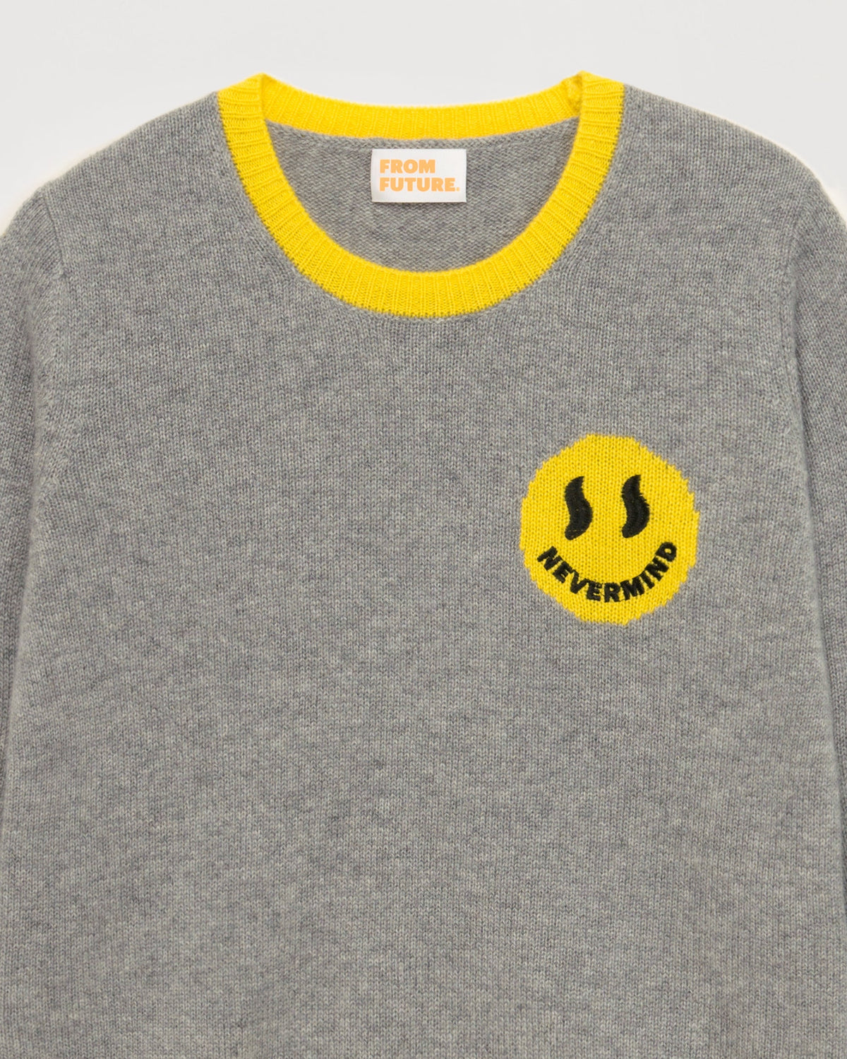 Sweater Col Rond Court Nevermind 4 Fils - 100% Cachemire - Gris chine fonc