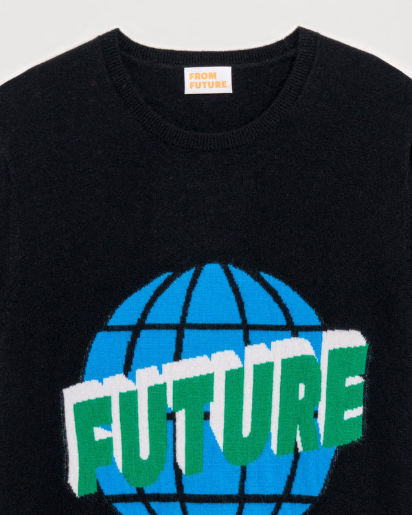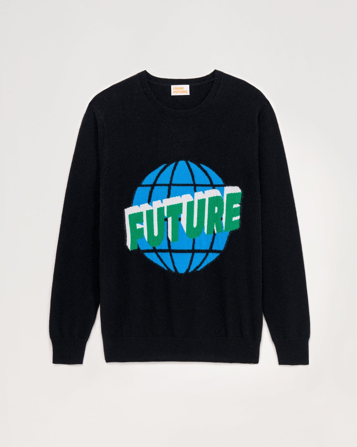 Sweater Col Rond Future Globe 2 Fils - 100% Cachemire - Noir
