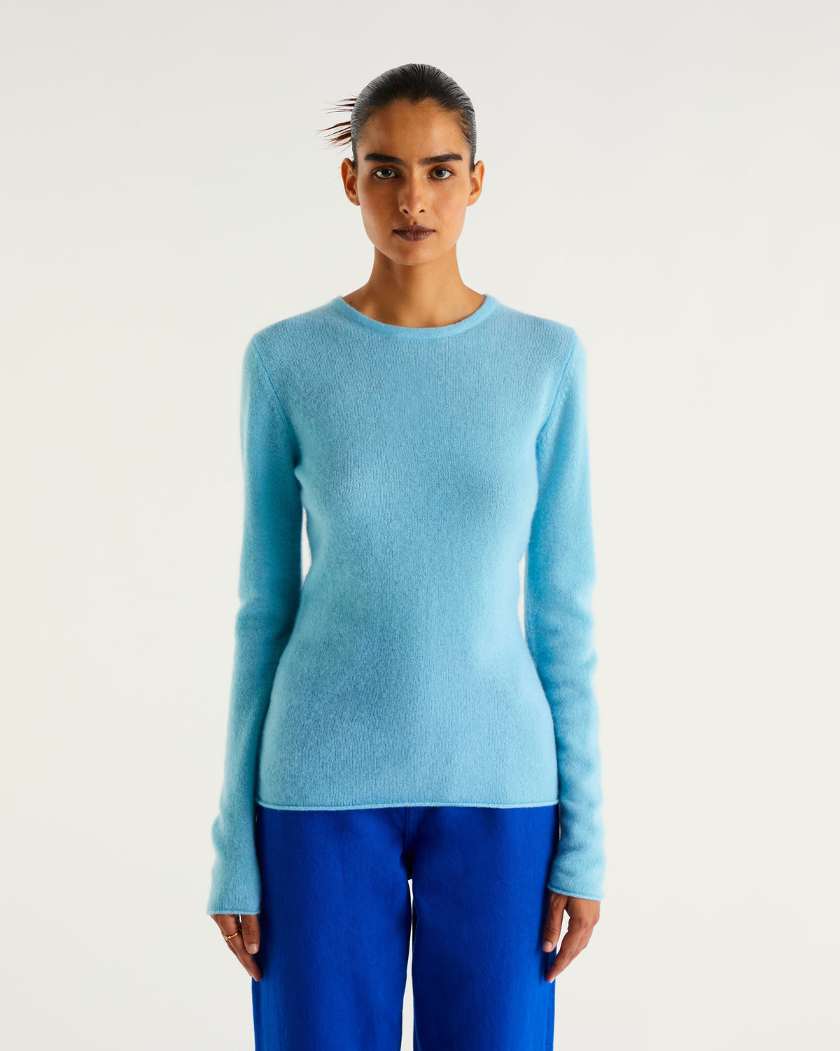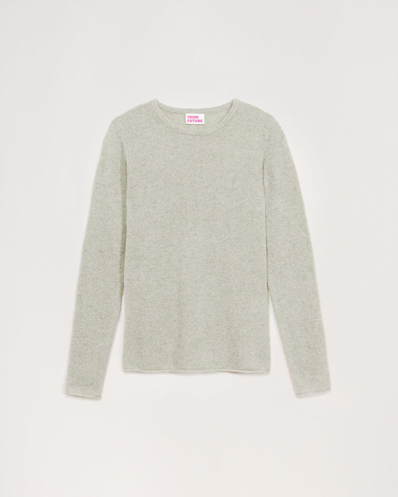 Sweater Slim Light Round Col - 100% Cachemire - Gris chine clai