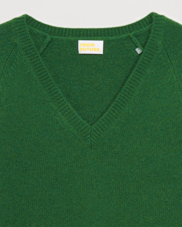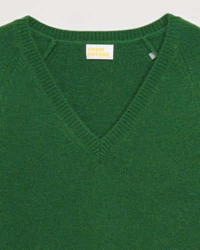 Sweater Short V Collar 6 threads - 100% Cachemire - Vert sapin