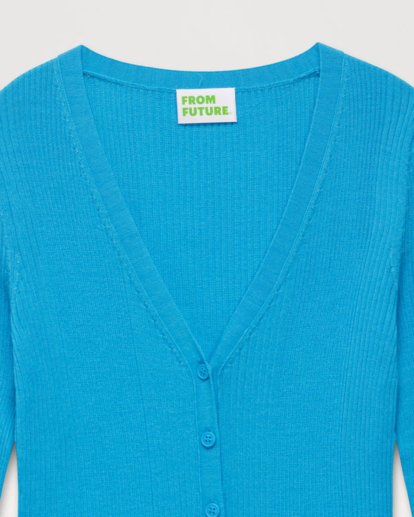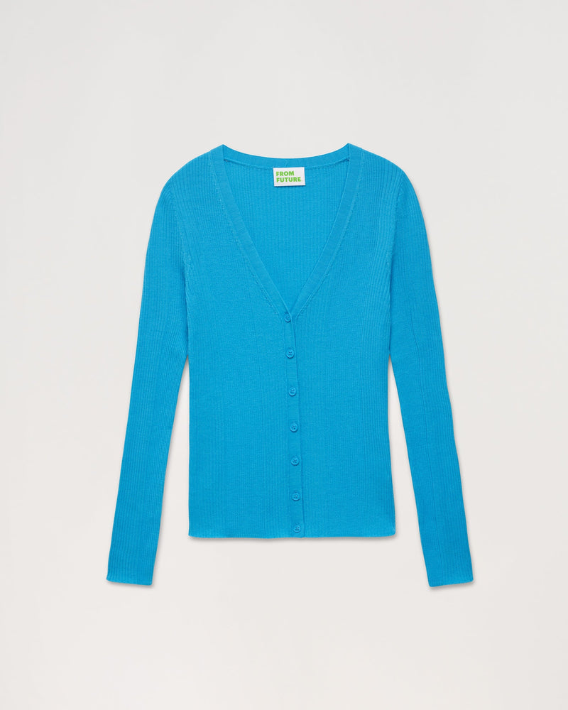 Pull Cardigan A Cotes - Laine Mérinos - Water blue