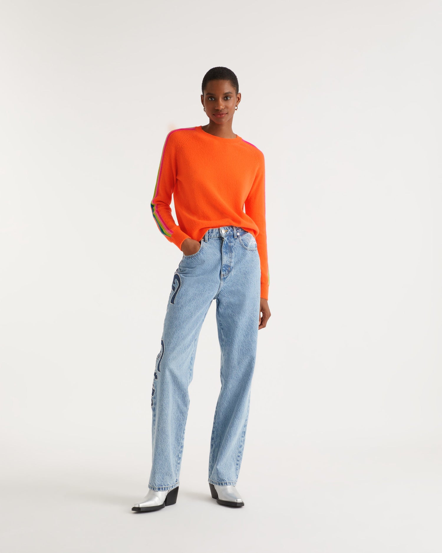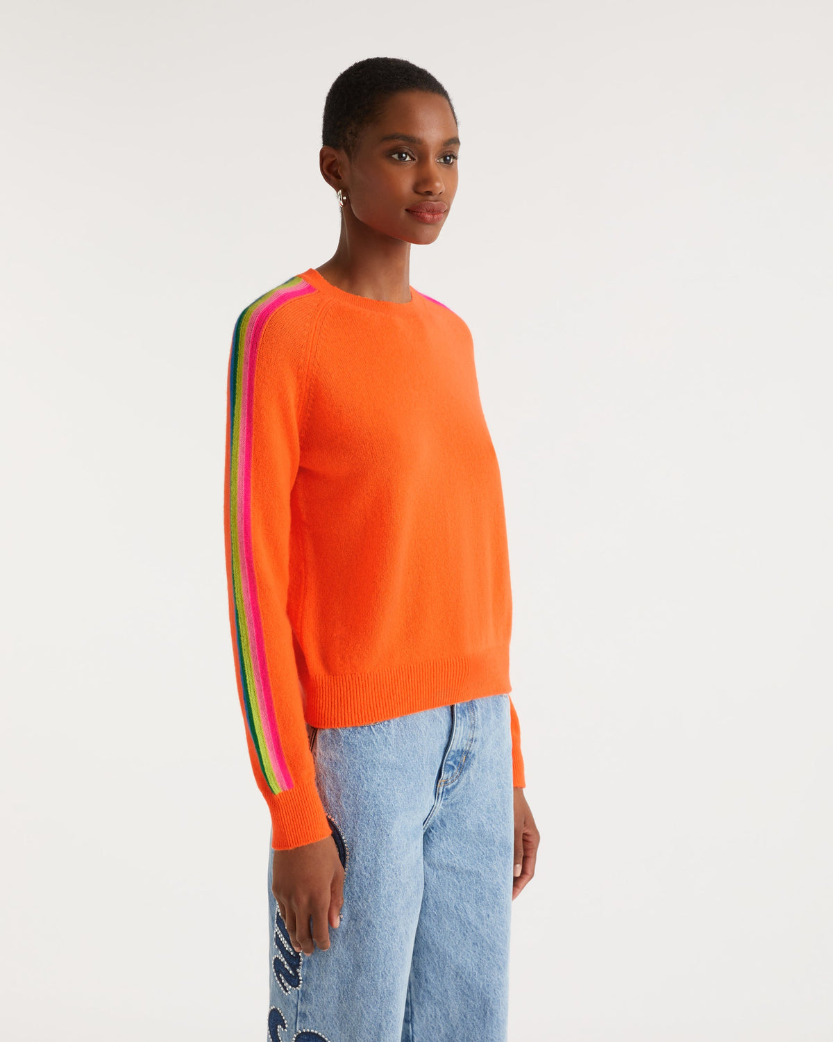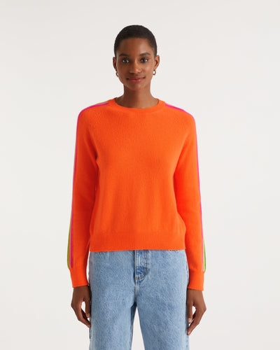 Pull Col Rond Bande Multicolore Aux Manches