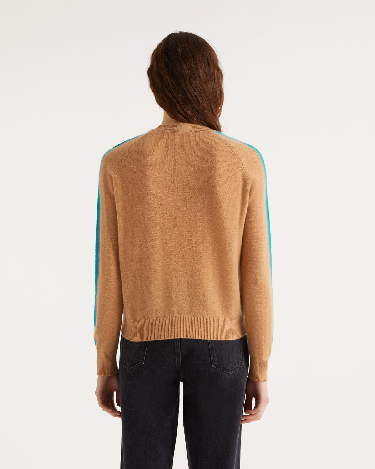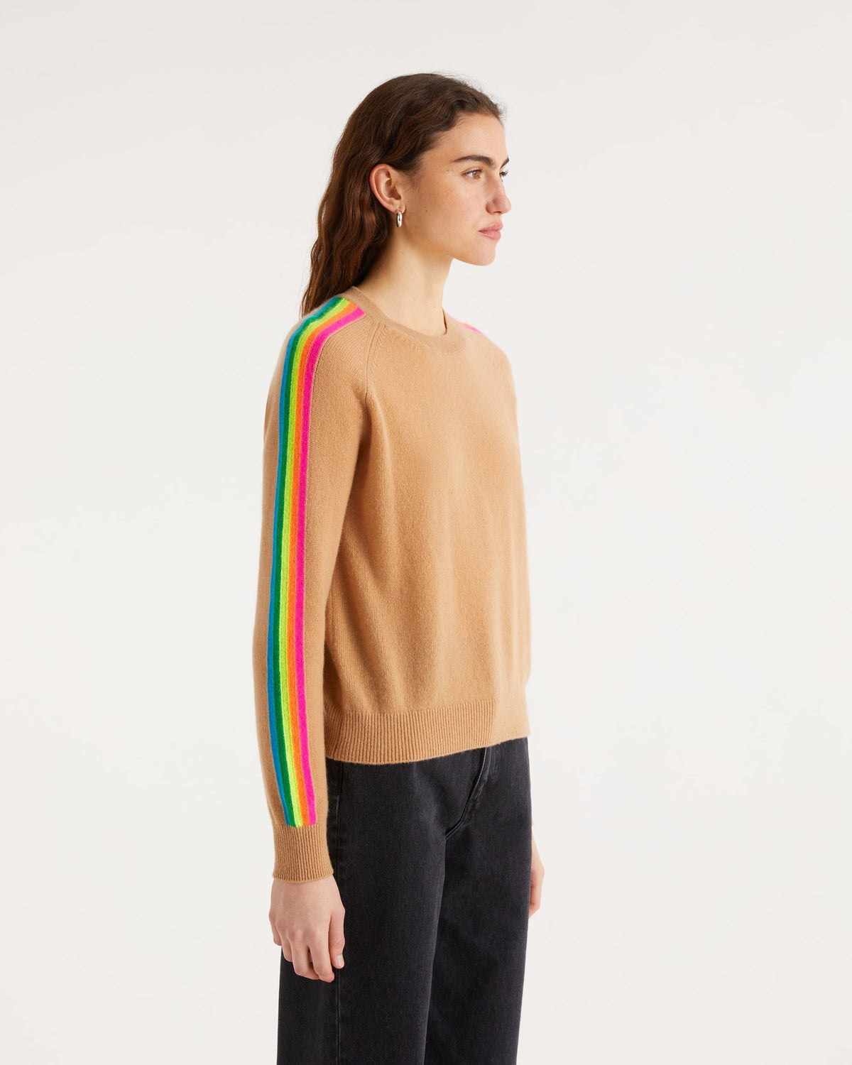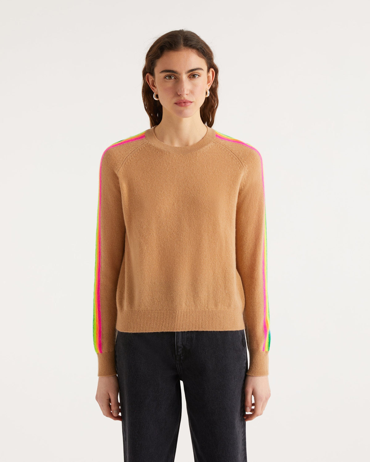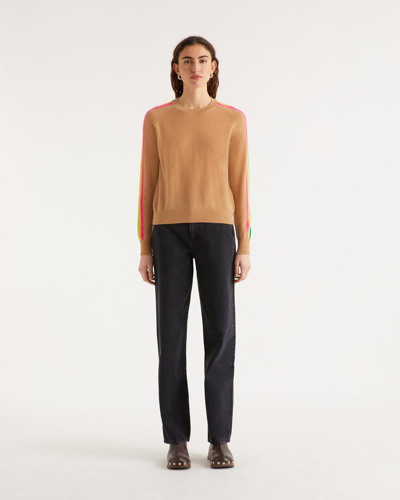 Pull Col Rond Bande Multicolore Aux Manches