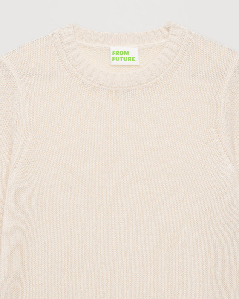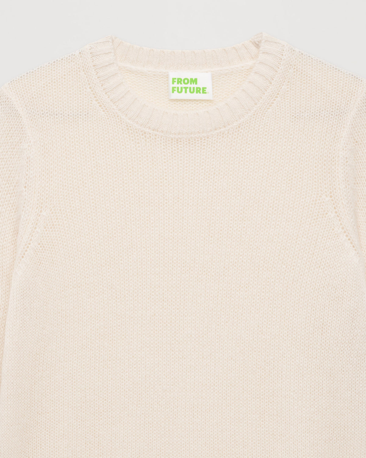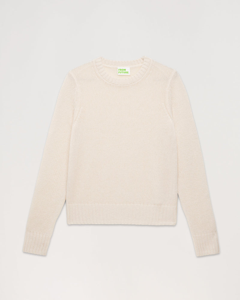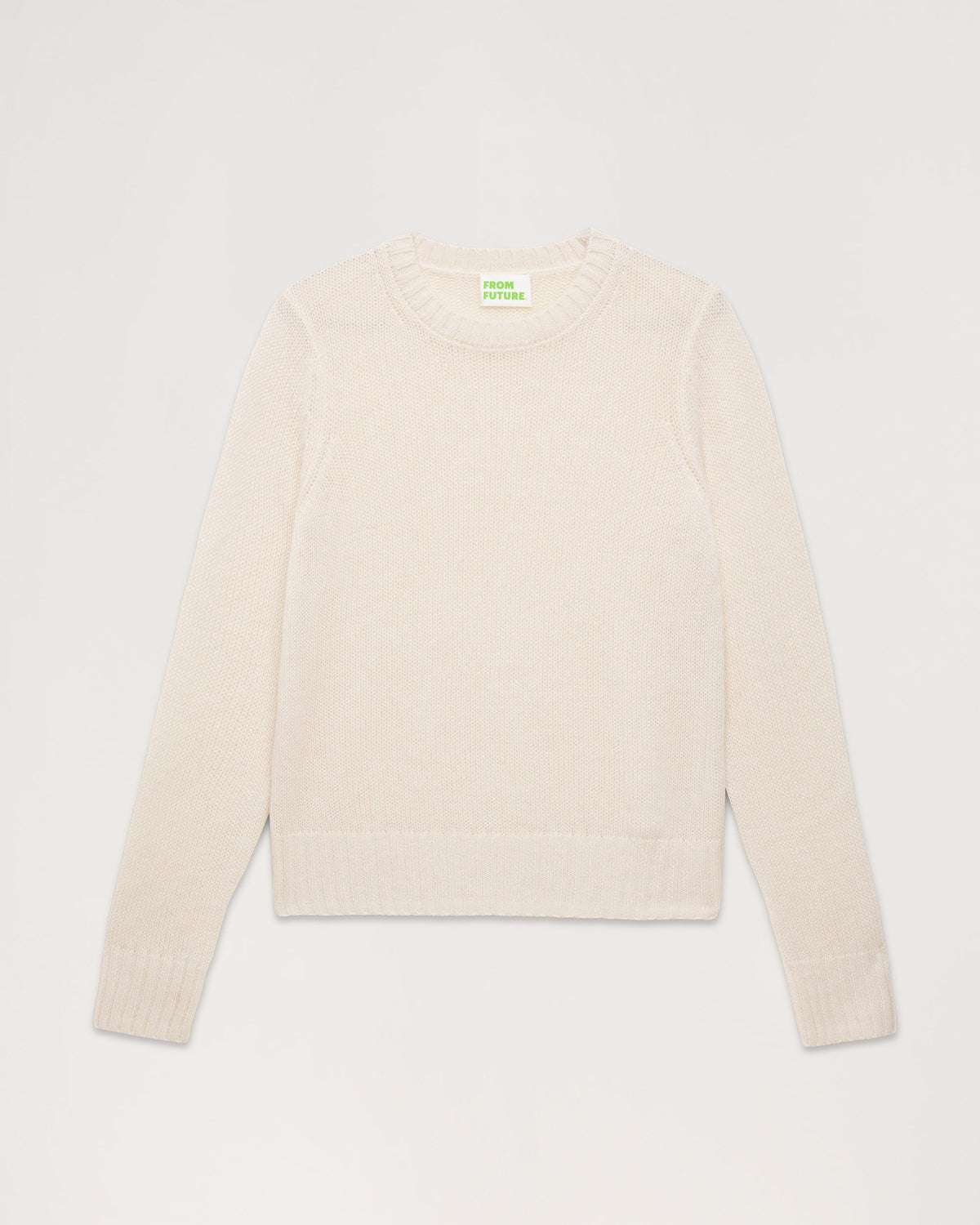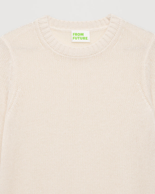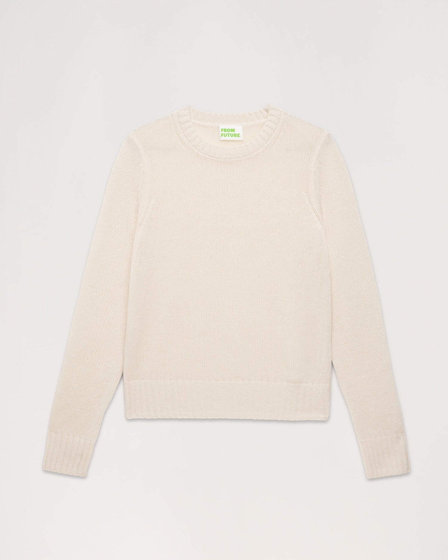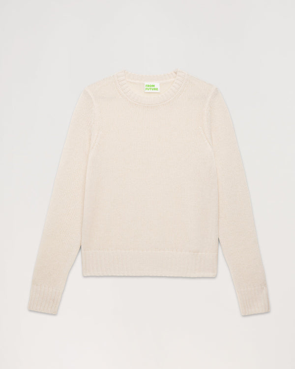 Sweater Pull Col Rond Court - Cachemire - Ecru