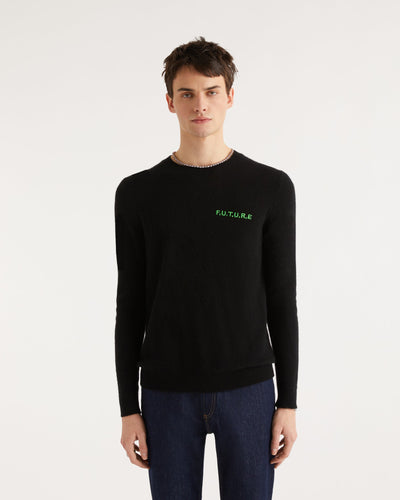 Sweater Pull Col Rond Future Brode Light - Cachemire - Noir