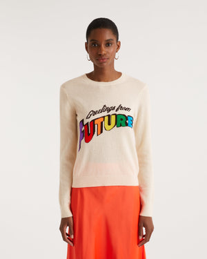 Sweater Pull Col Rond Greetings From Future Court - Cachemire - Ecru