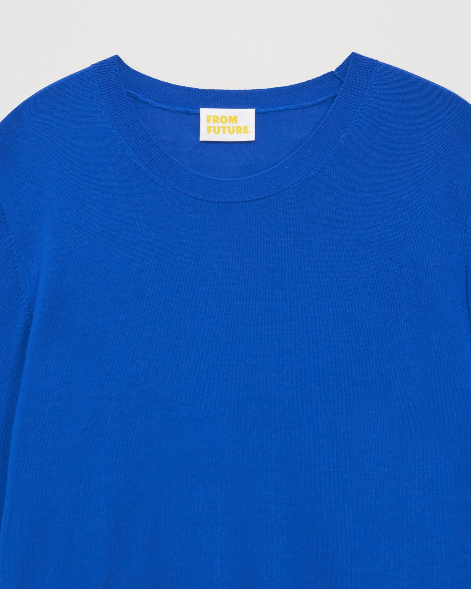 Sweater Pull Col Rond Rayures From Future Manches - Laine Mérinos - Crazy blue