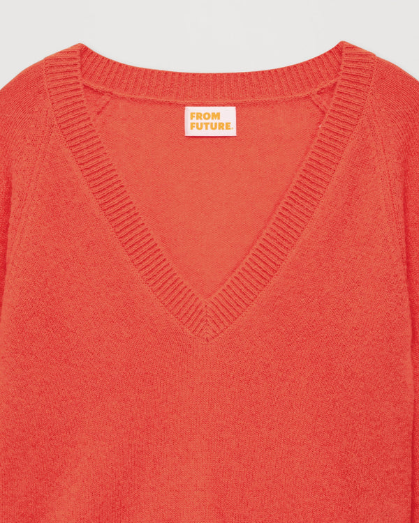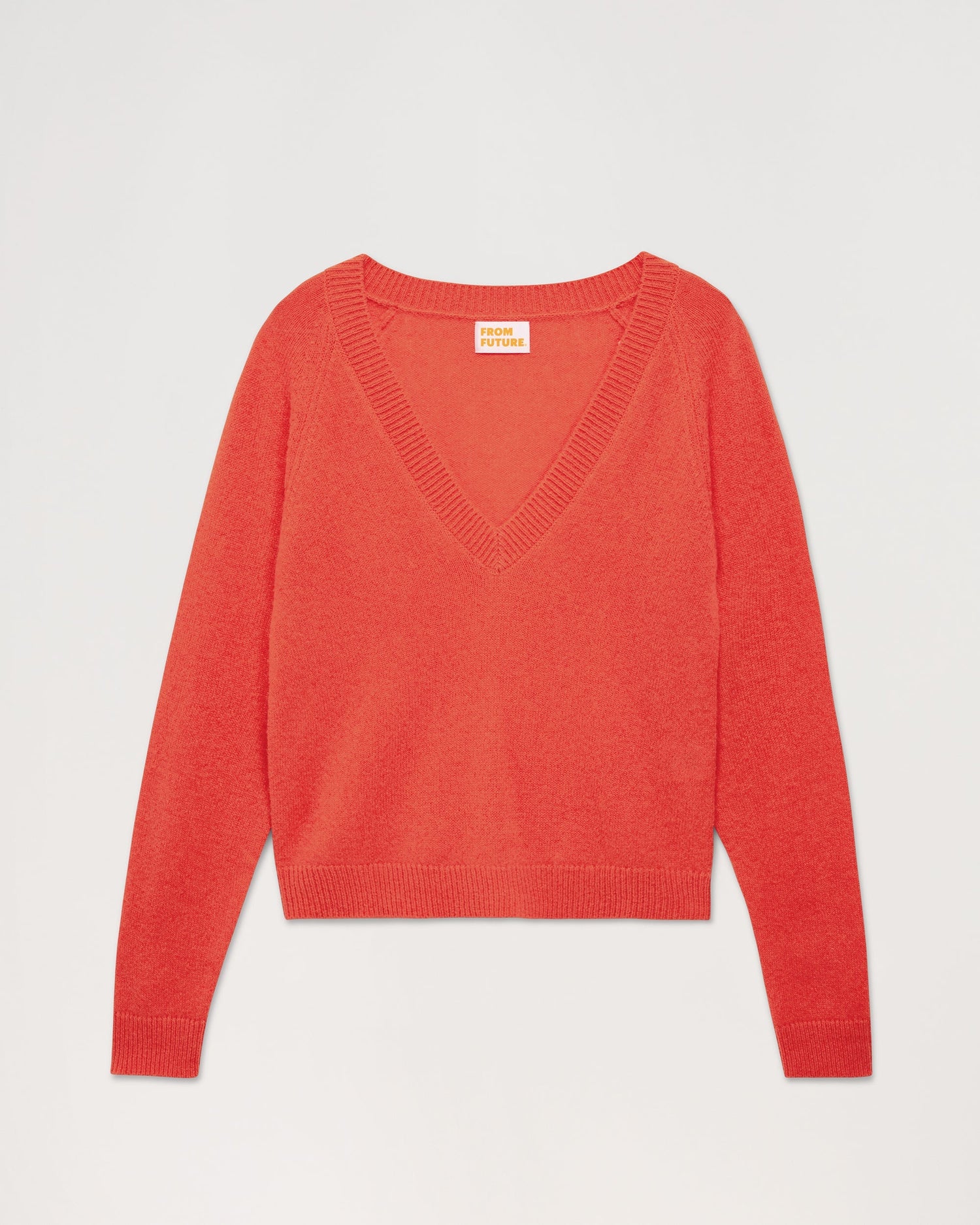 Sweater Pull Col V Manches Raglan Light - Cachemire - Neon orange