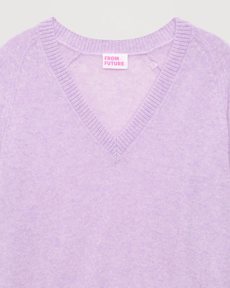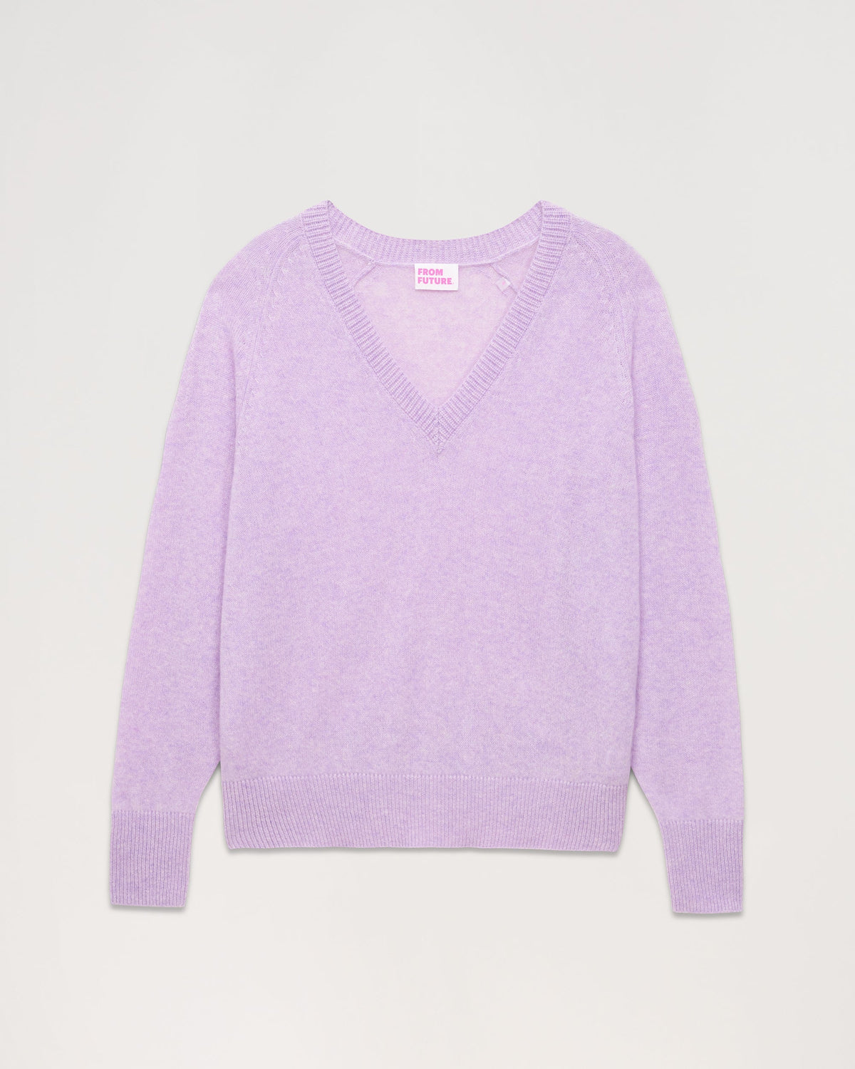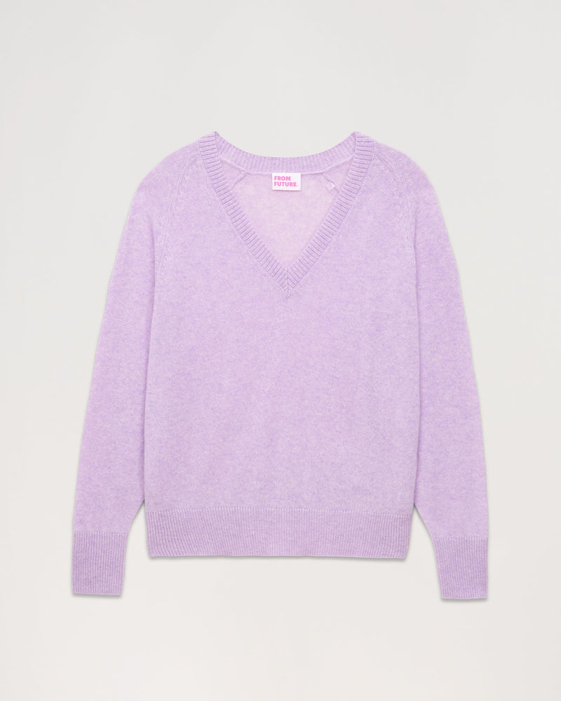 Sweater Pull Col V Oversize Light - Cachemire - Sunset lilac