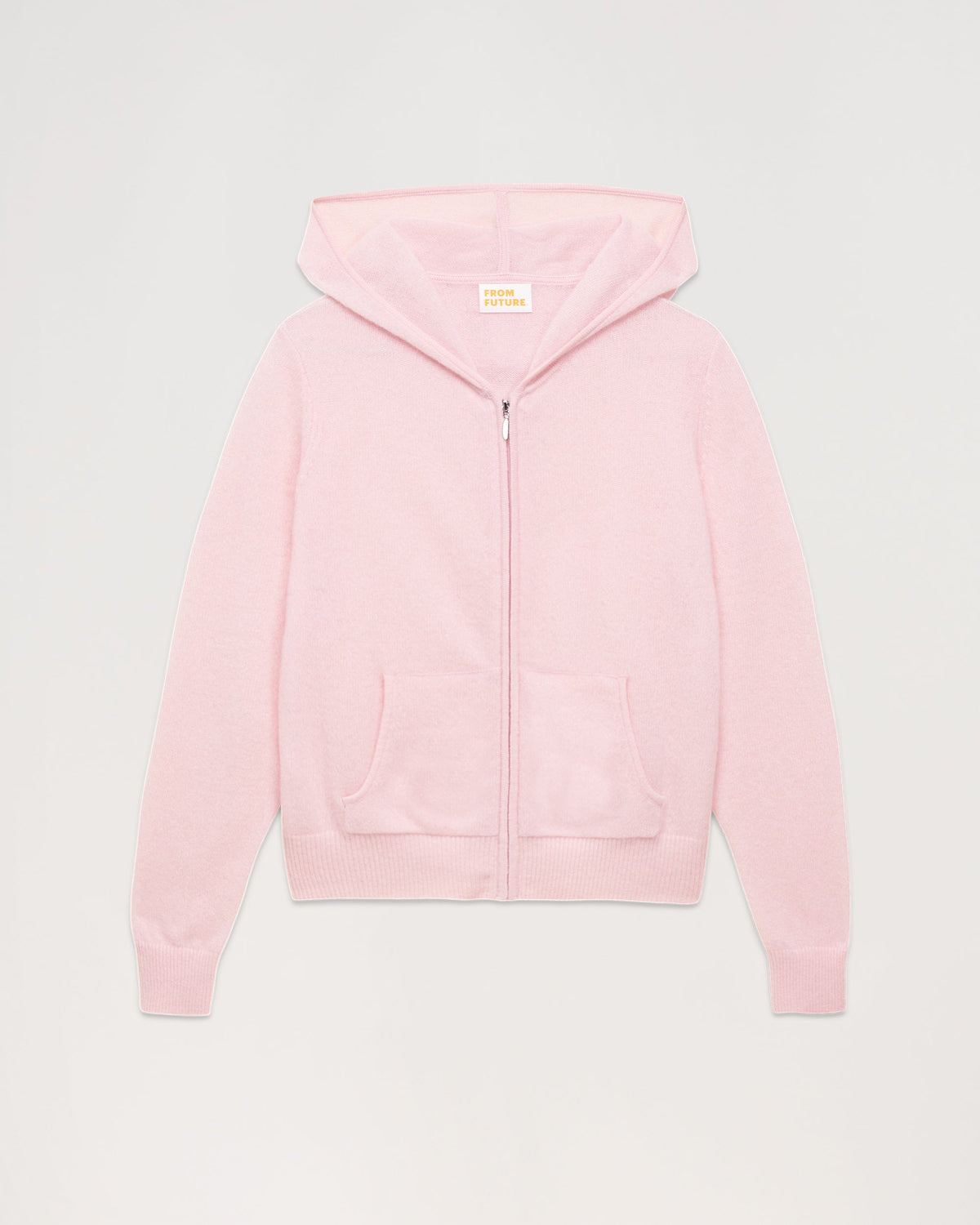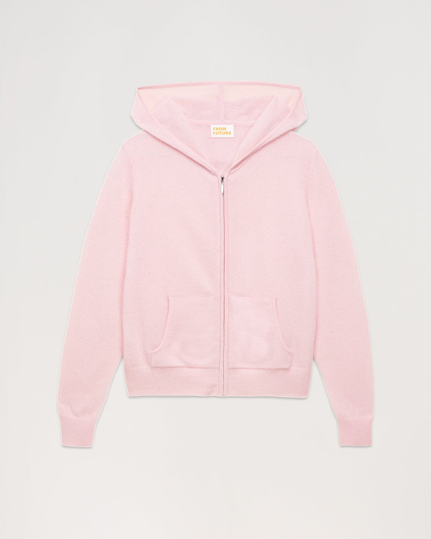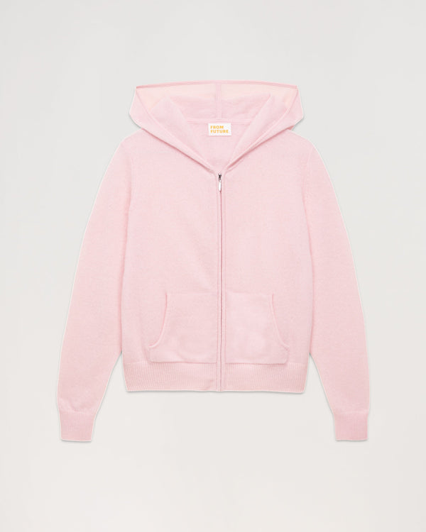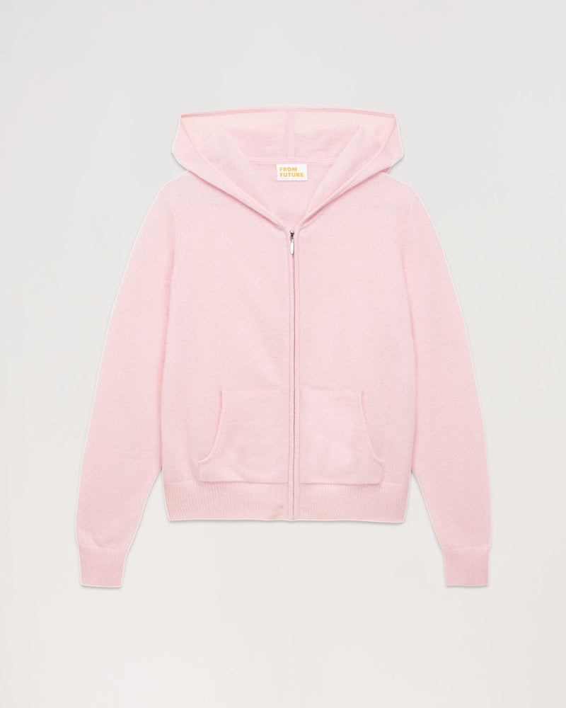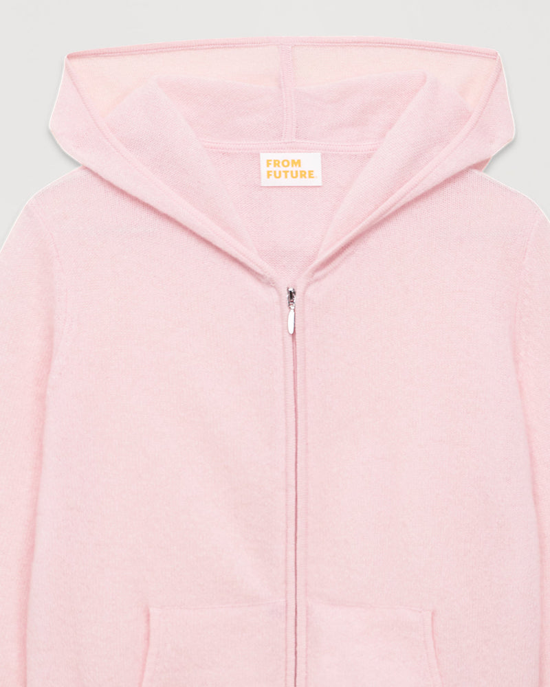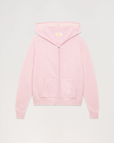 Pull Hoodie Court Zippe Uni - Cachemire - Rose poudre