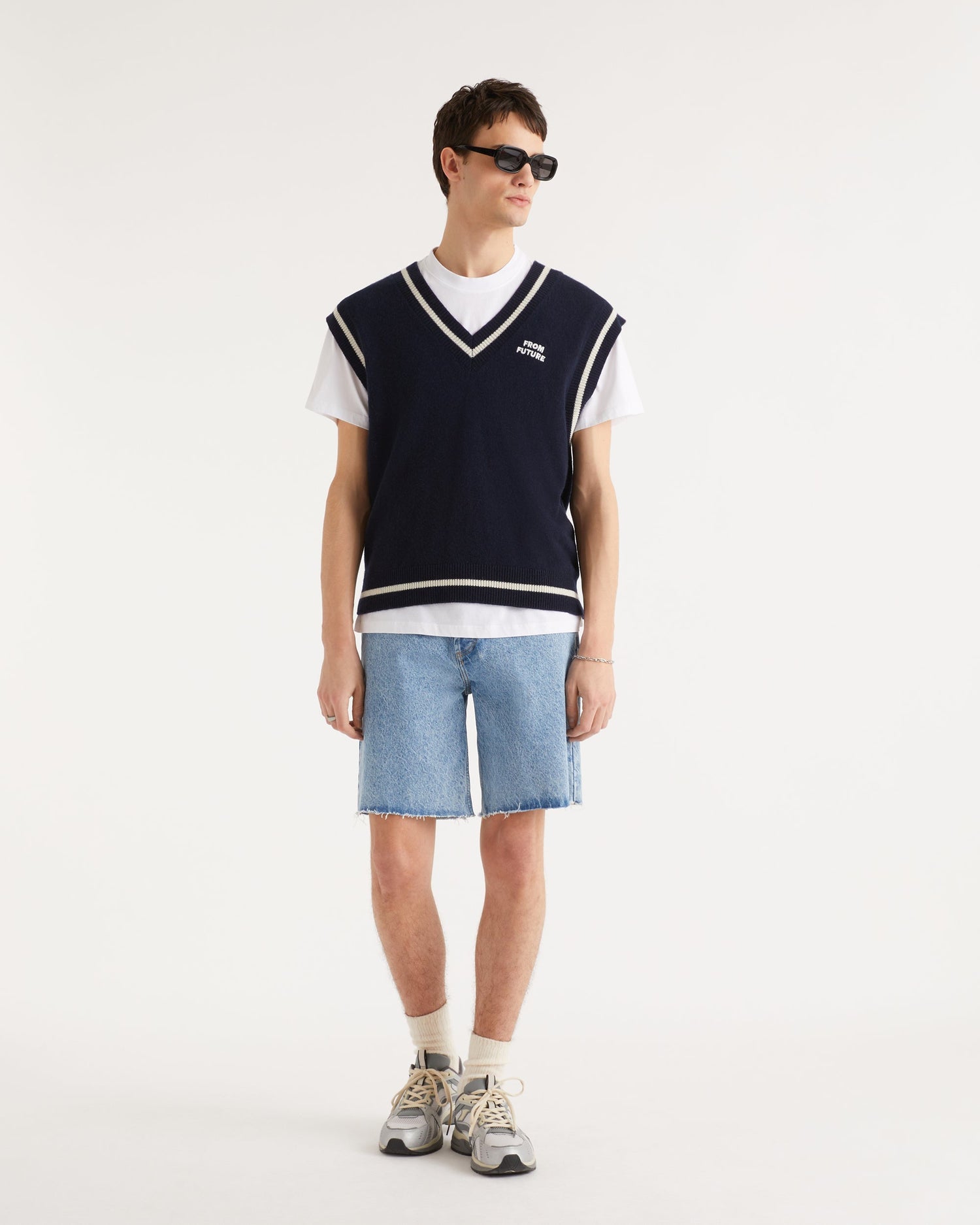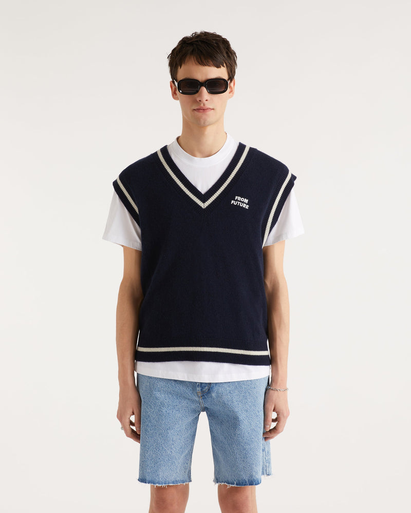 Sweater Pull Sans Manche Col V From Future - Cachemire - Navy