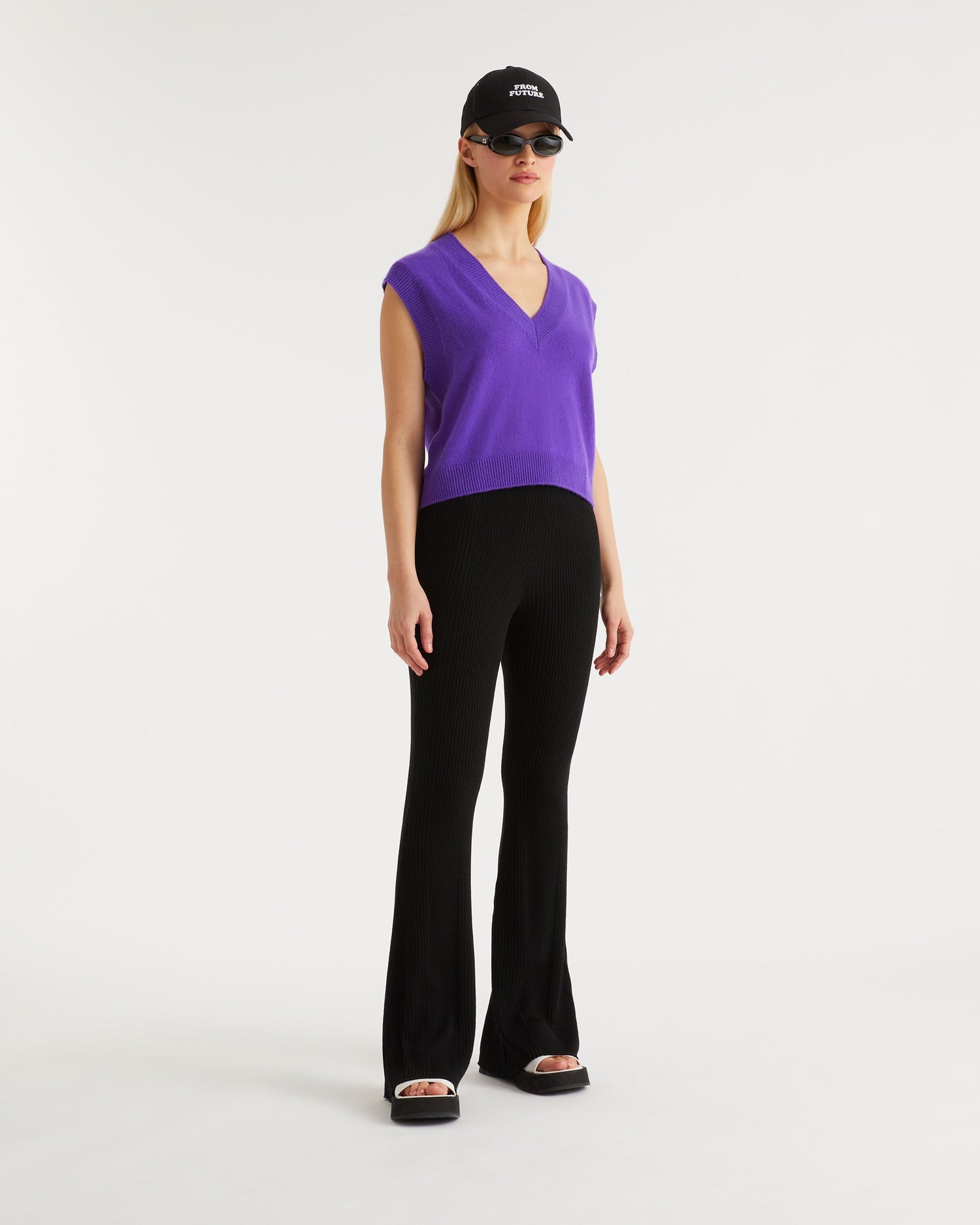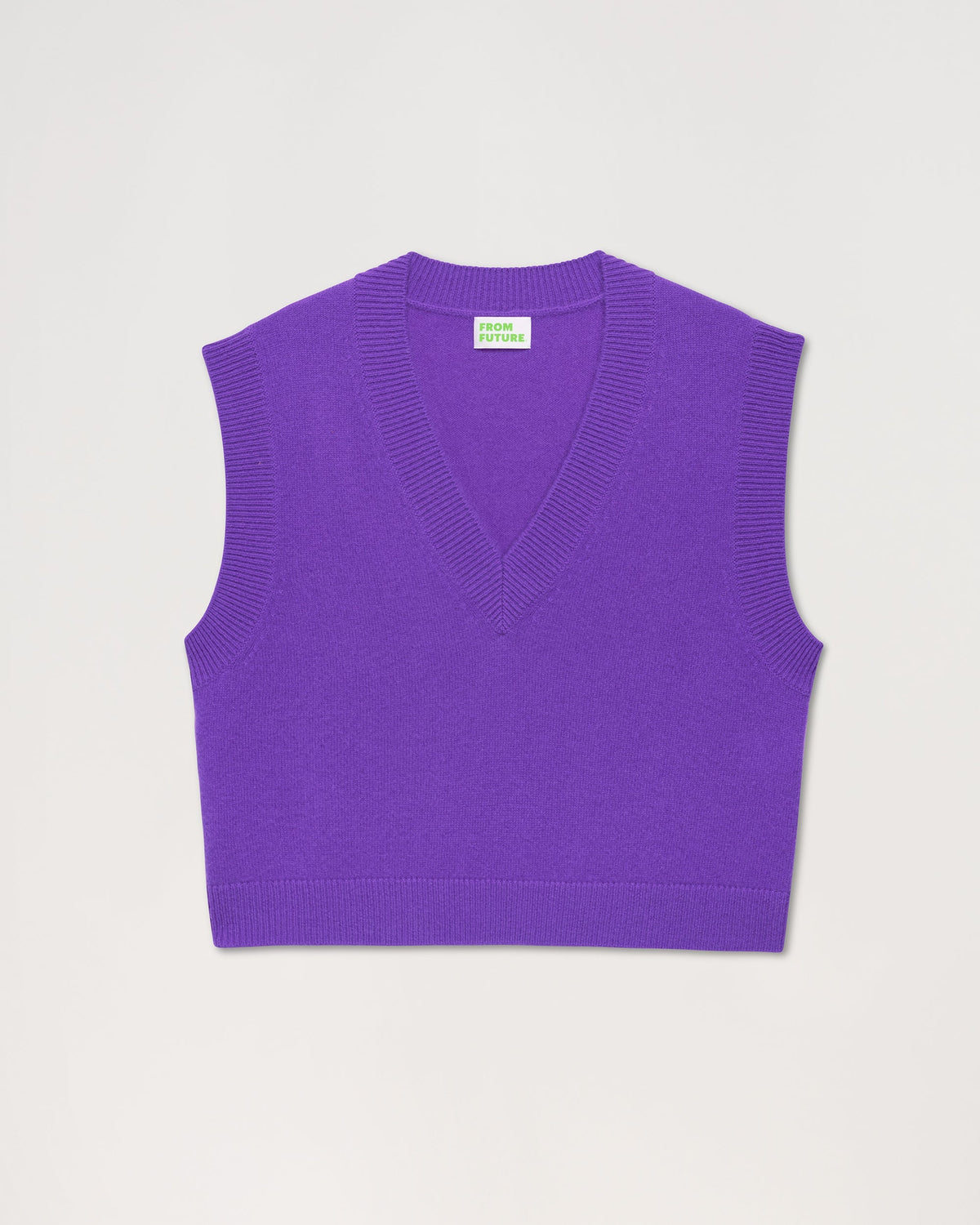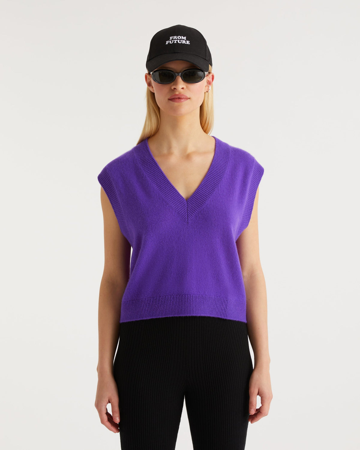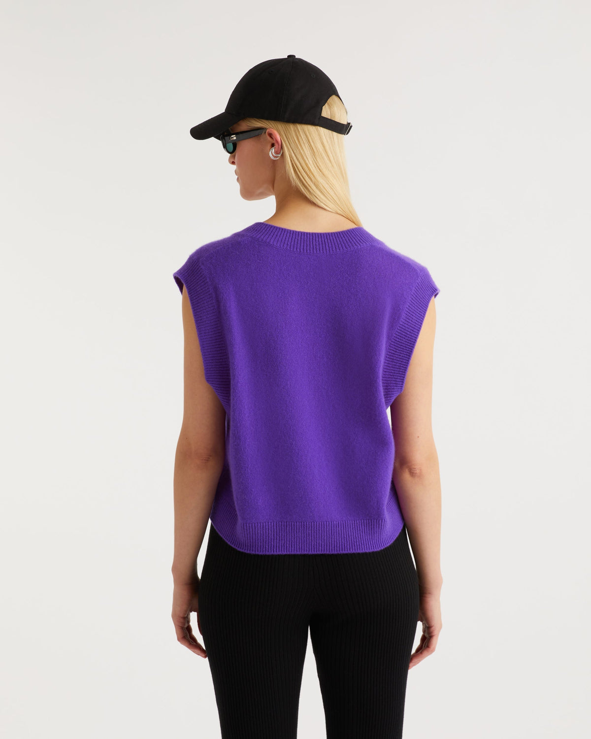 Sweater Pull Sans Manche Col V Uni Light - Cachemire - Violet fluo