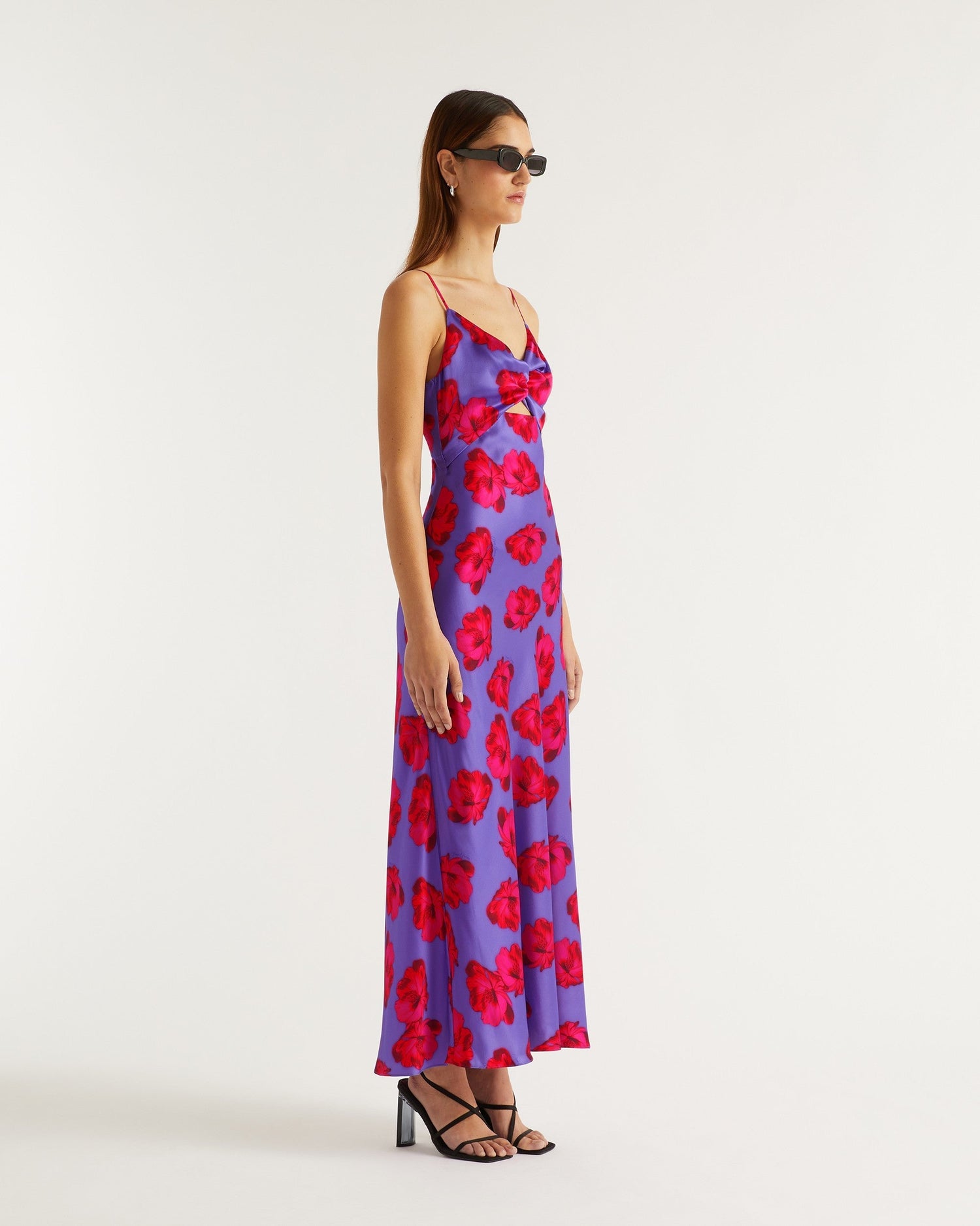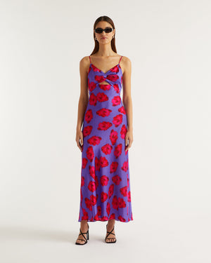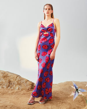 Robe Longue Bretelle Salma - Soie - Purple poppy