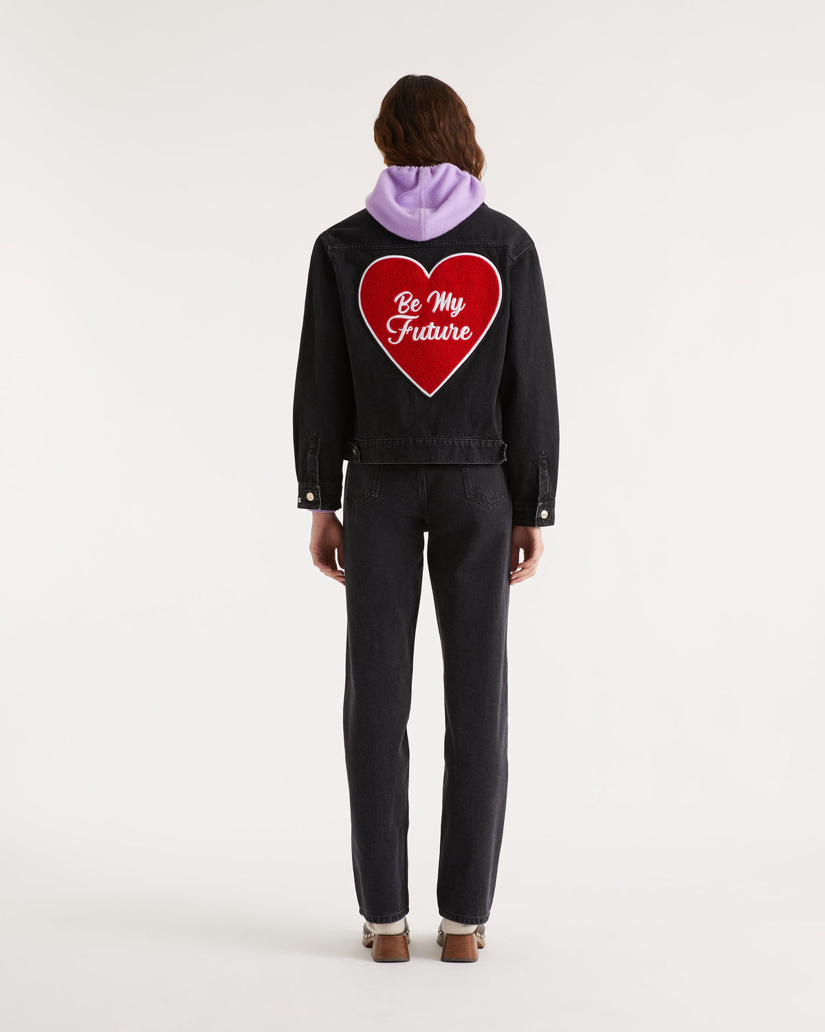Veste Broderie Coeur - Denim Recyclé - Noir