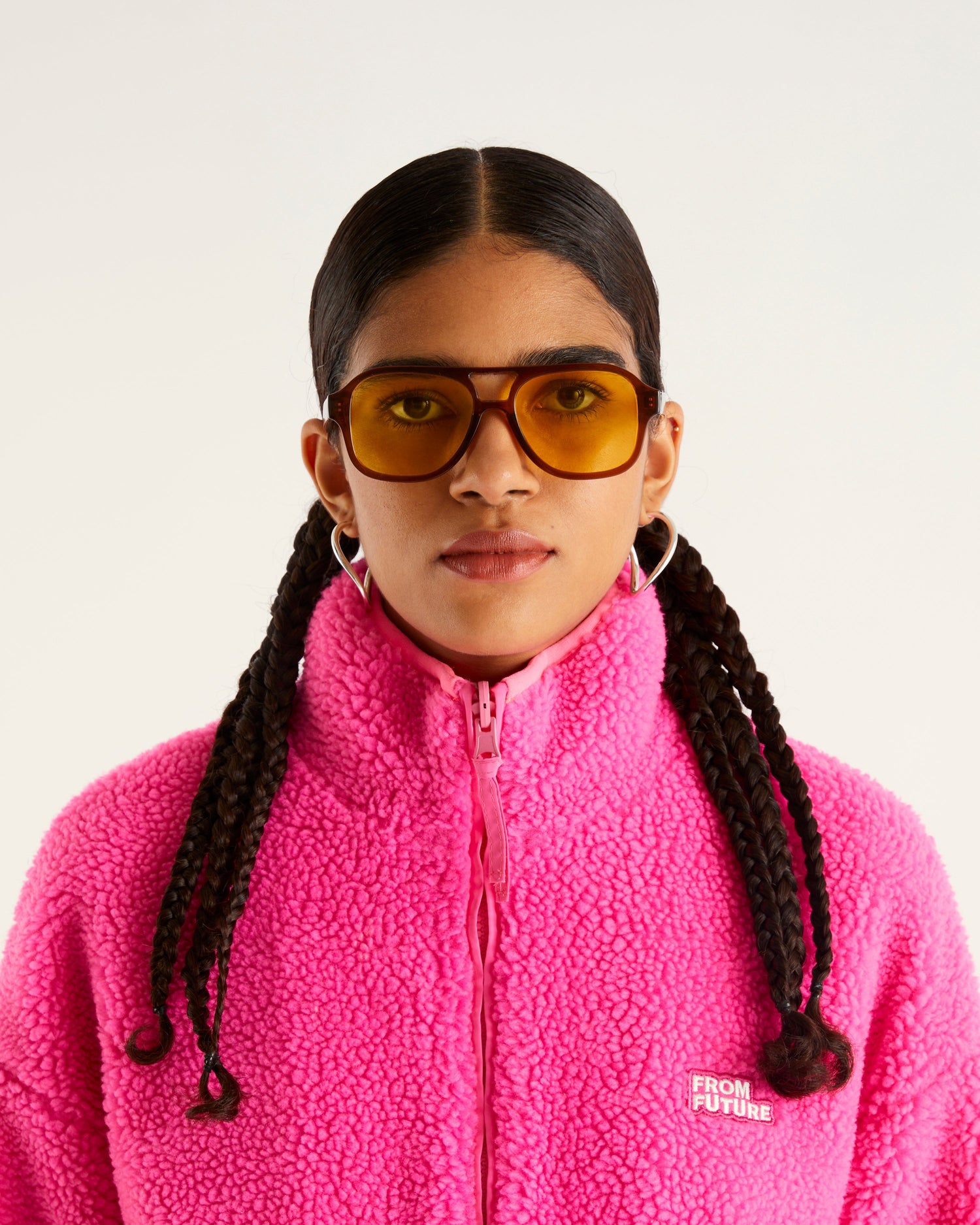 Veste Zippé Sherpa FROM FUTURE - Polyester Recyclé - Rose fluo